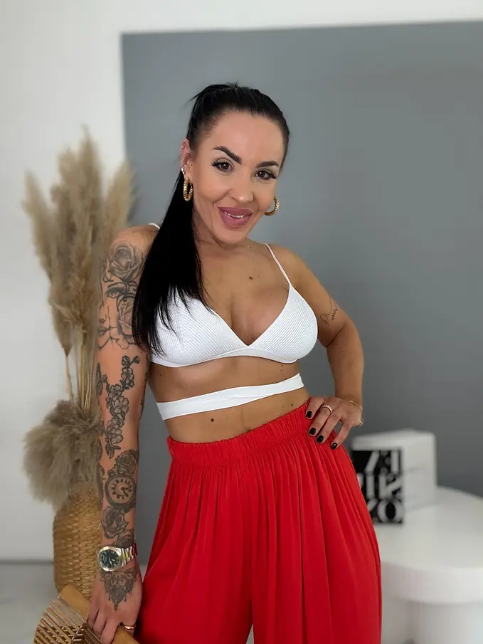 Gumis derekú nadrág, finom tapintású, anyaga nem rugalmas
