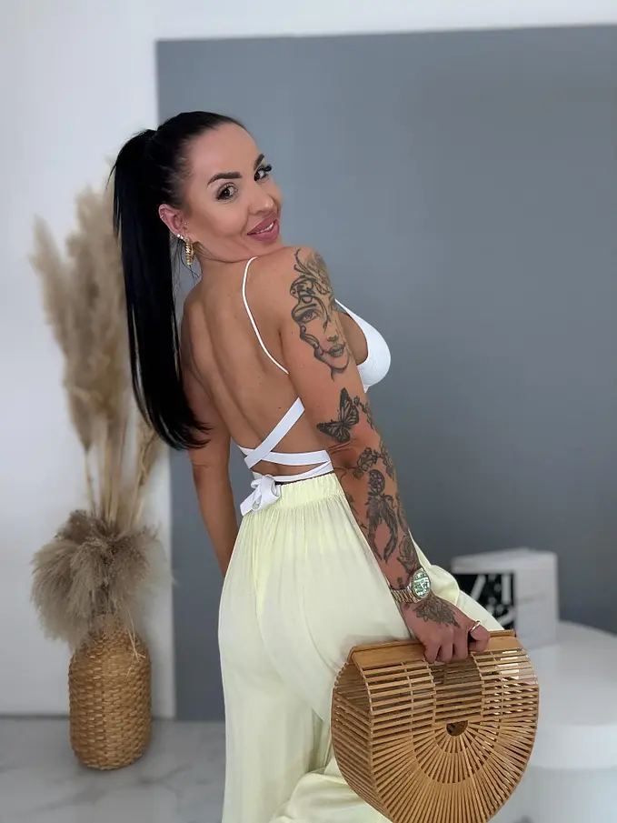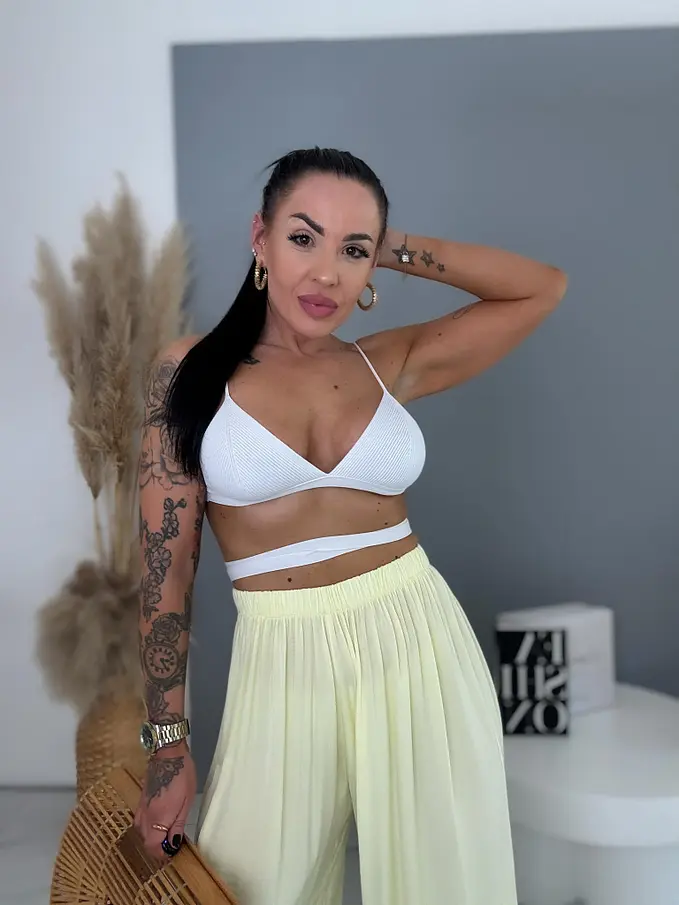 Gumis derekú nadrág, finom tapintású, anyaga nem rugalmas