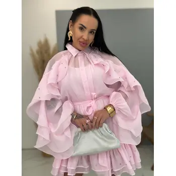 Fodros sifon ruha kövecskékkel díszítve és övvel LUXURY