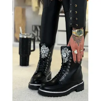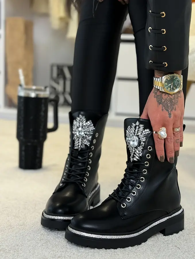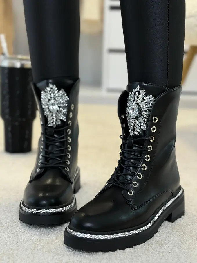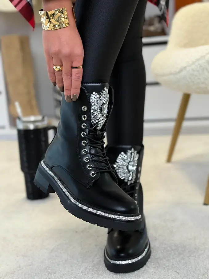Füzős bokacsizma ezüst színű dísszel KENZA