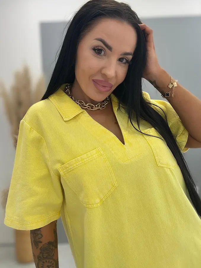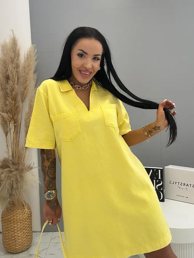 Prémium minőség. Sikkes és laza farmer ruha, amely egyetlen női ruhatárból sem hiányozhat. Kellemes, ám nem elasztikus anyagból készült.