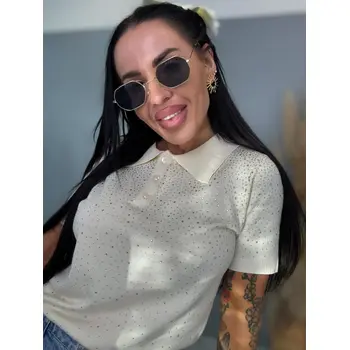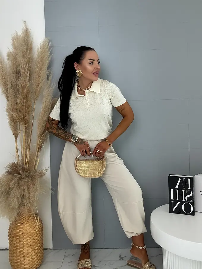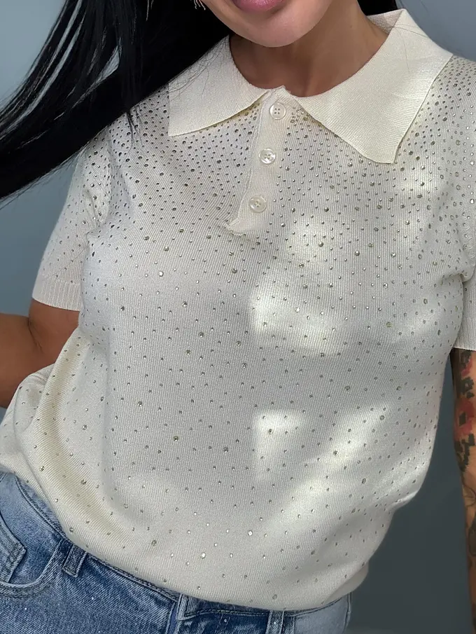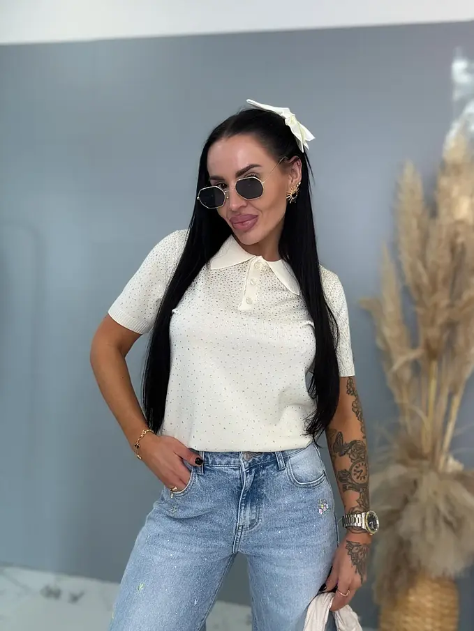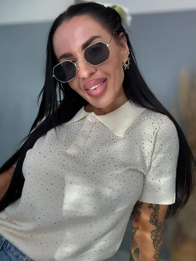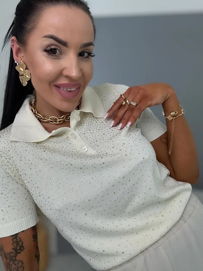 Gombolópánttal és kövekkel díszített pulóver LUCIE