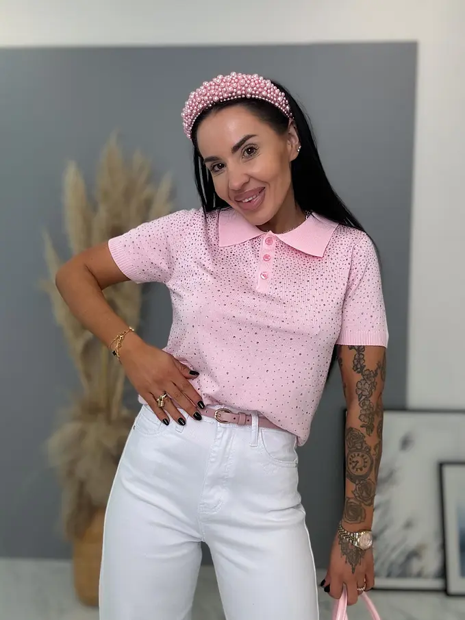 Gombolópánttal és kövekkel díszített pulóver LUCIE