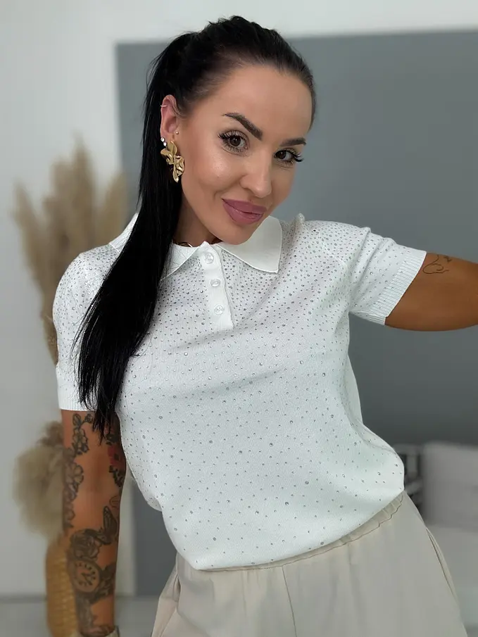 Gombolópánttal és kövekkel díszített pulóver LUCIE