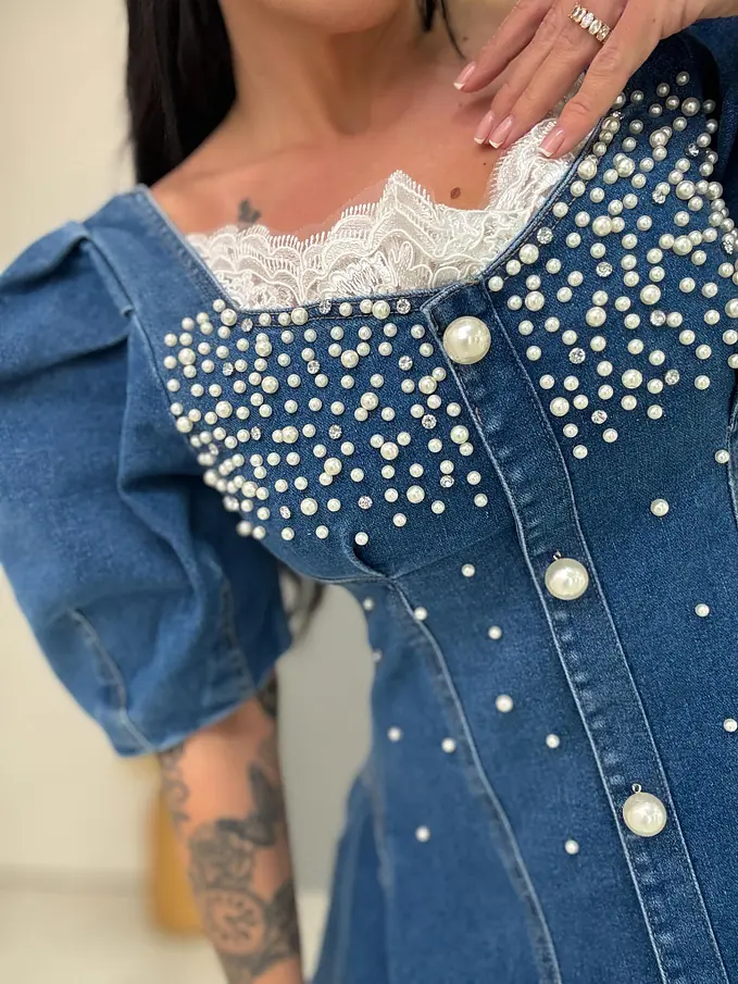 Gombos farmerruha gyöngyökkel díszítve LILIA