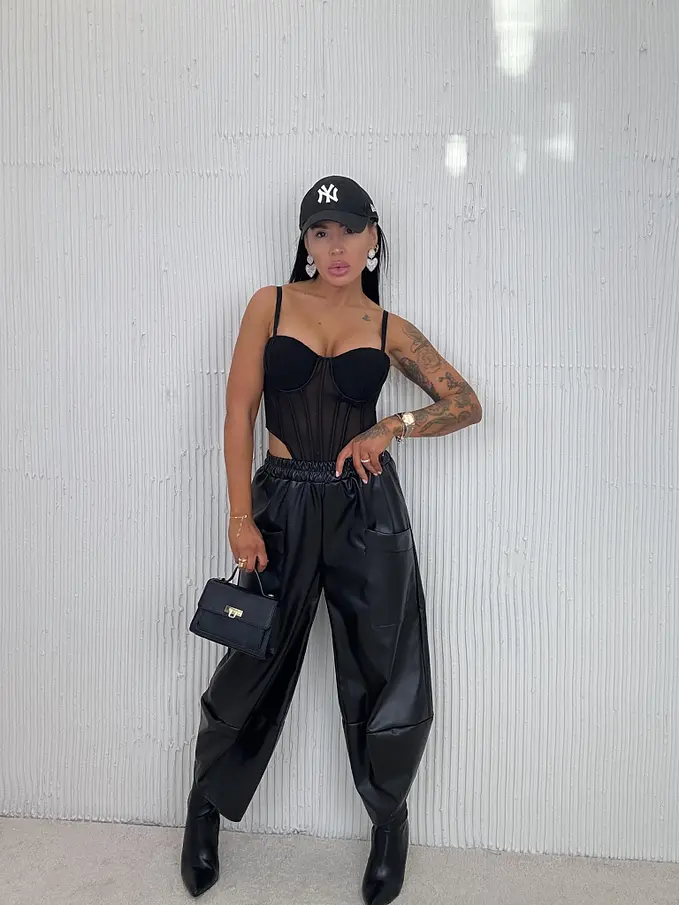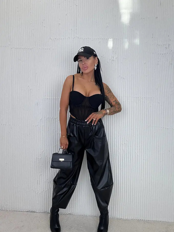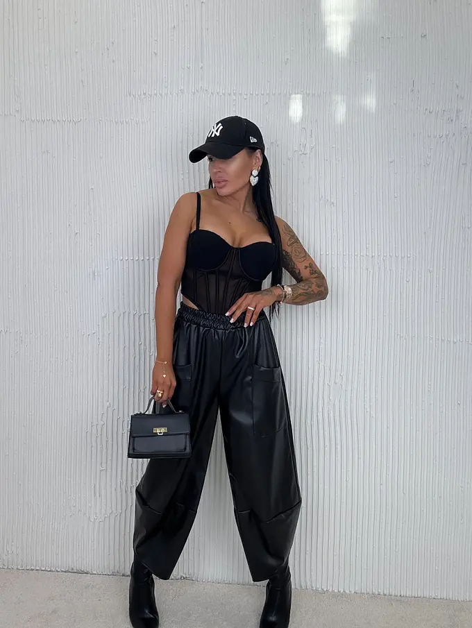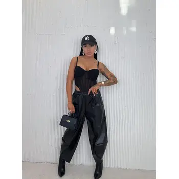 A nadrág kellemes anyagból készült. A dereka gumis és zsebekkel az elején. A nadrág az alján összehúzható.