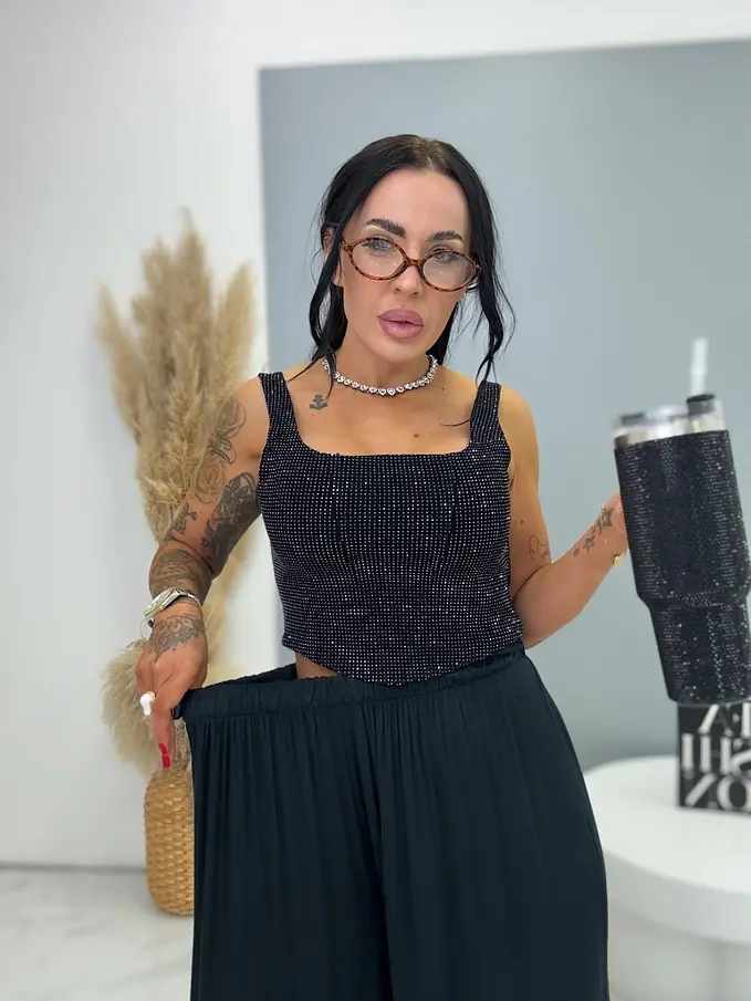 A modell fekete hajú, magassága 164 cm, súlya 64 kg.