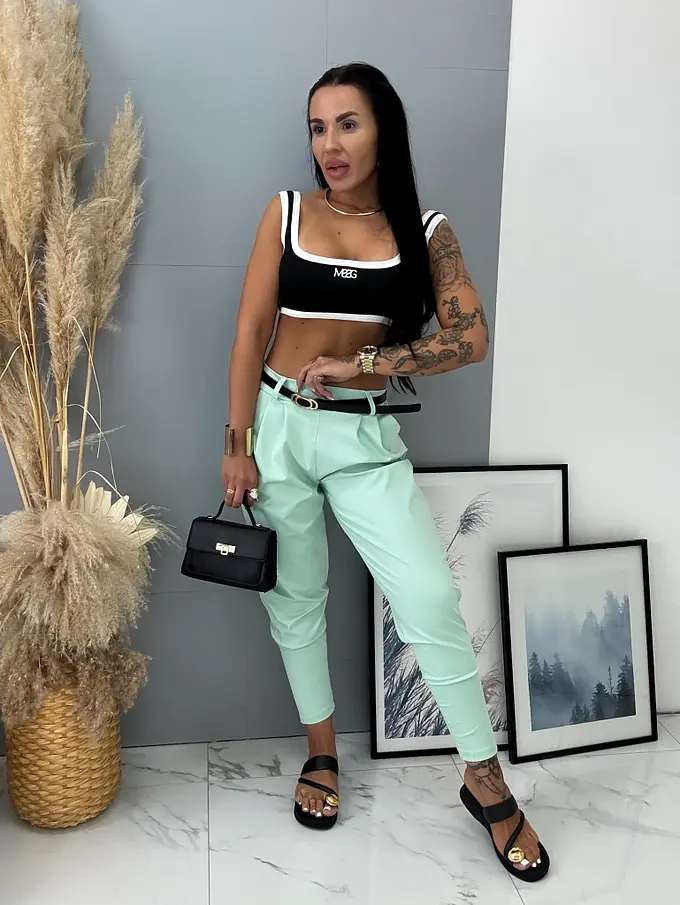 Kényelmes nadrág elasztikus anyagból. Az övcsat arany színű.