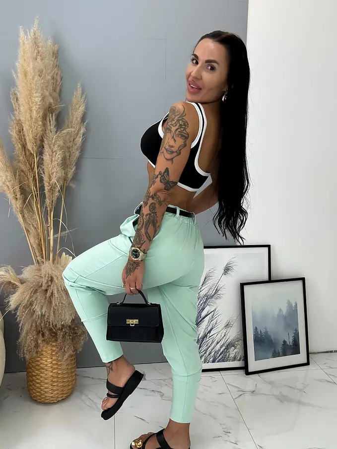 Gumis derekú sportosan elegáns nadrág övvel ROZI