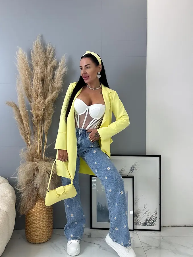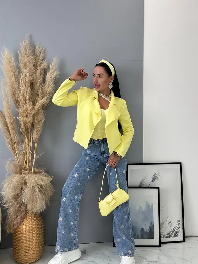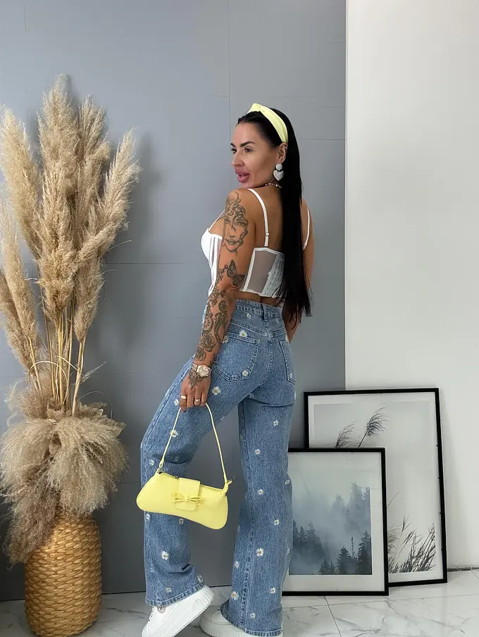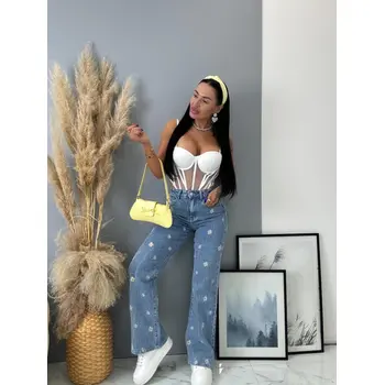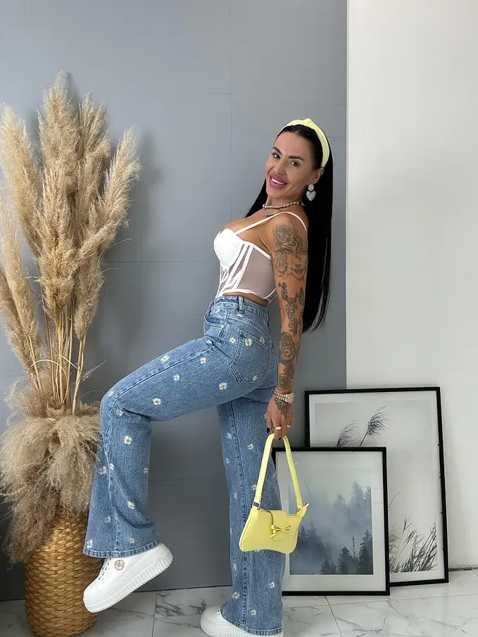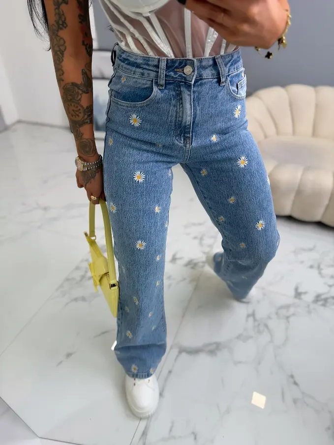 Hímzéssel díszített High Waist farmer FLOWERY