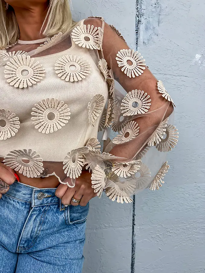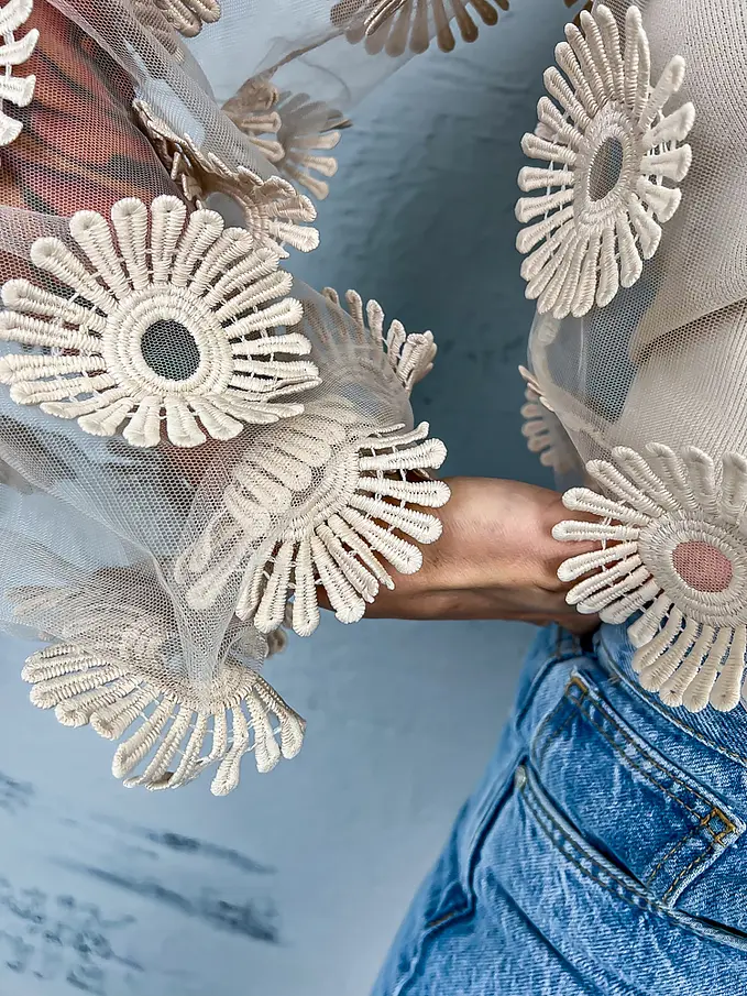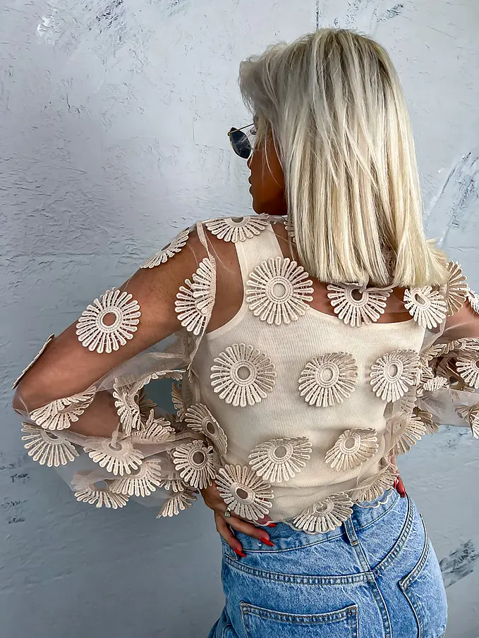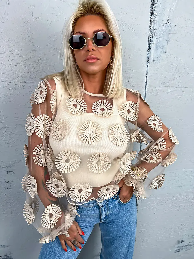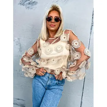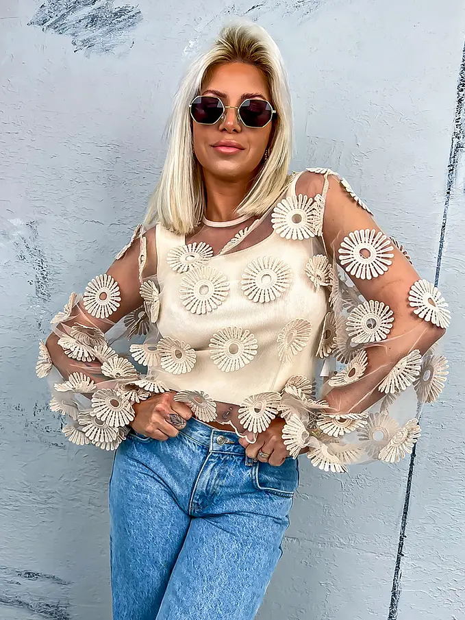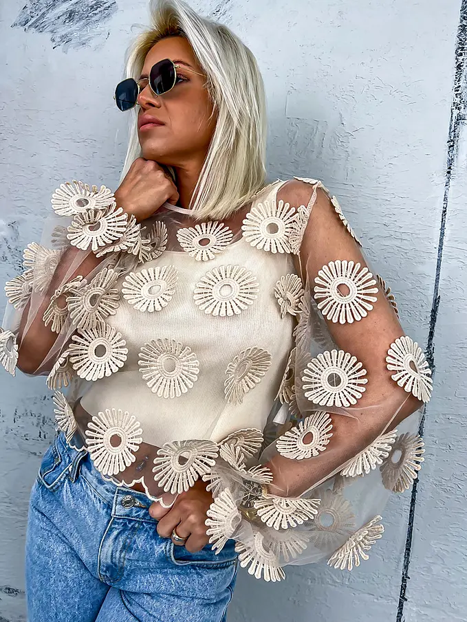 Hímzett virágokkal díszített átlátszó blúz ZDENKA