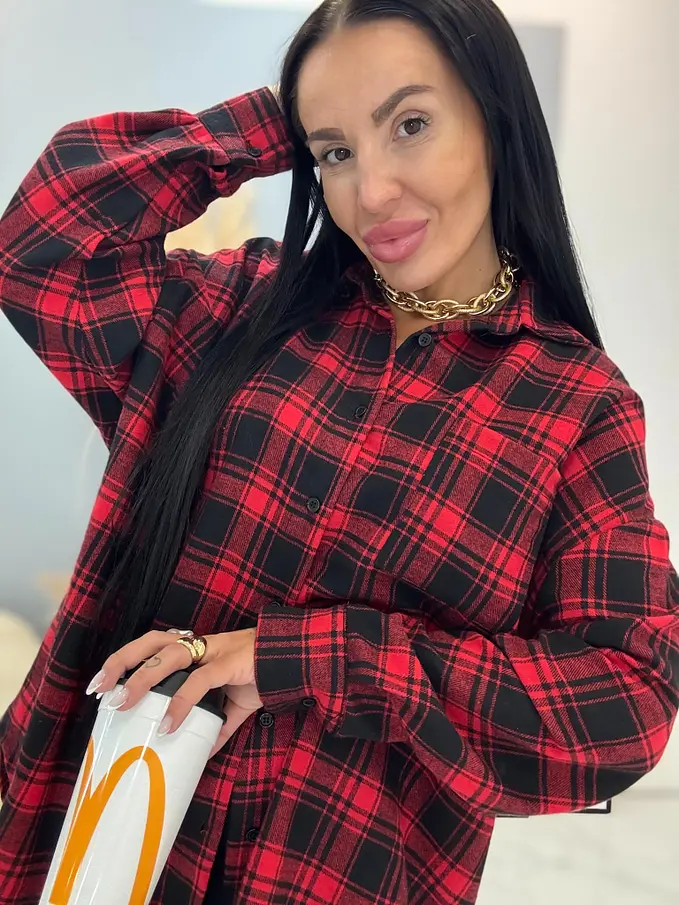 Hosszított kockás női ing MORINDA
