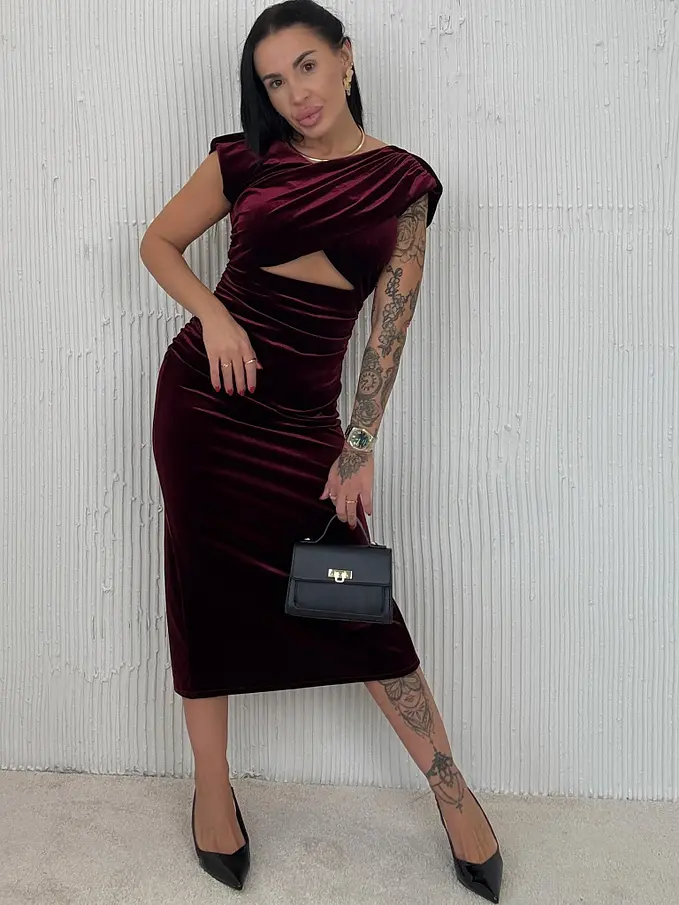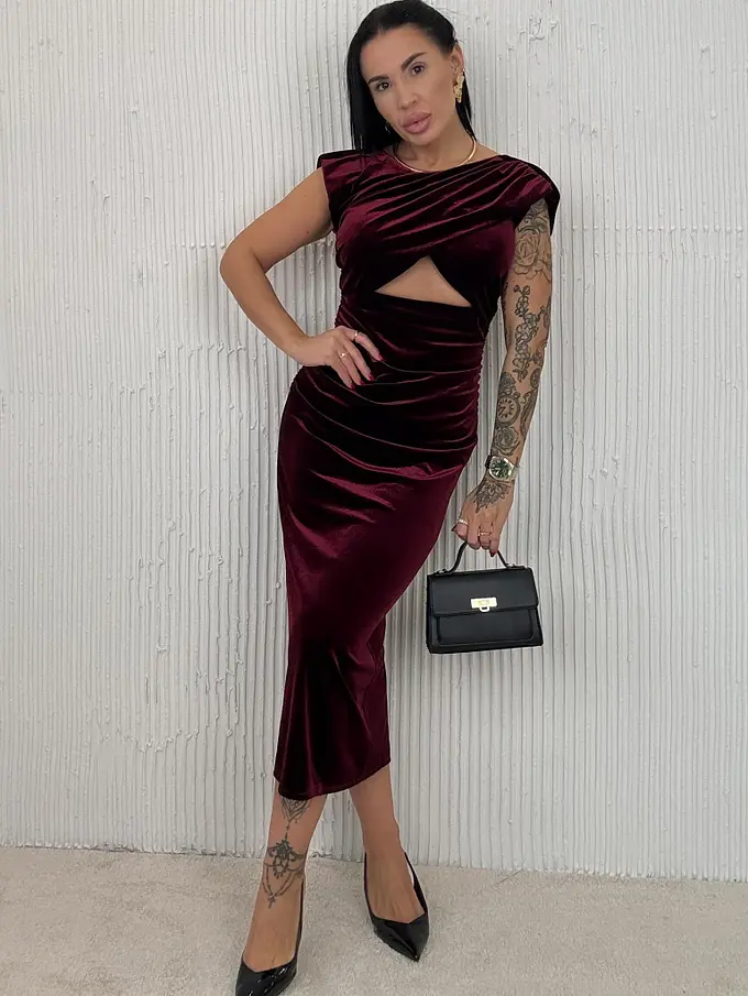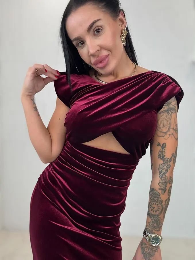 A ruha kellemes elasztikus anyagból készült. Oldalán gumival.