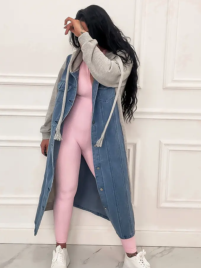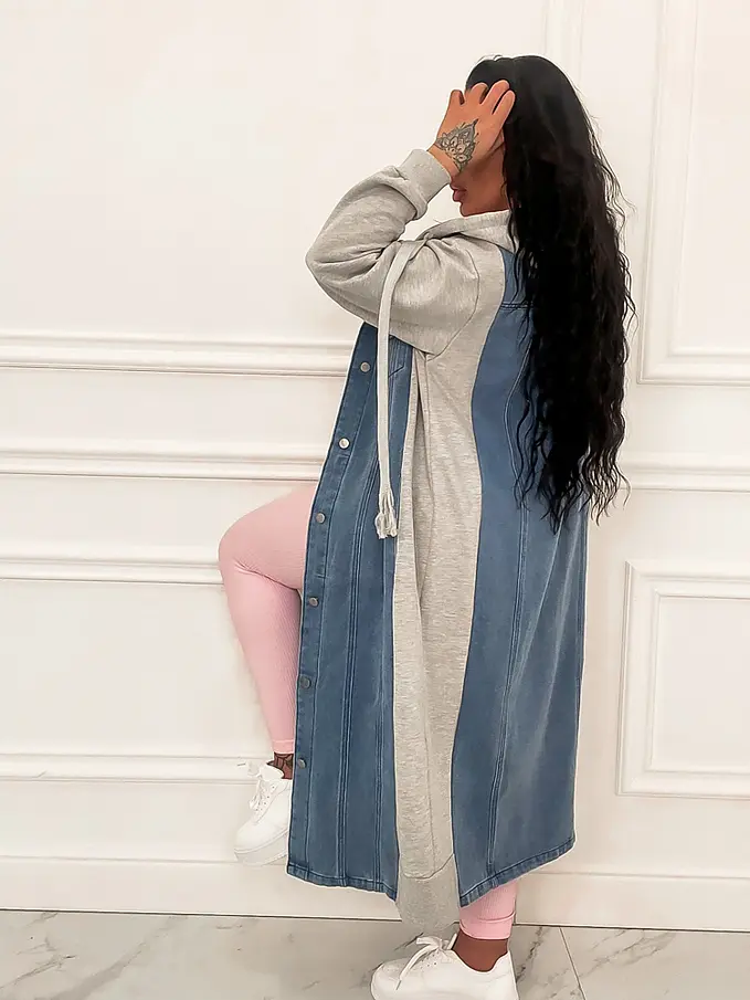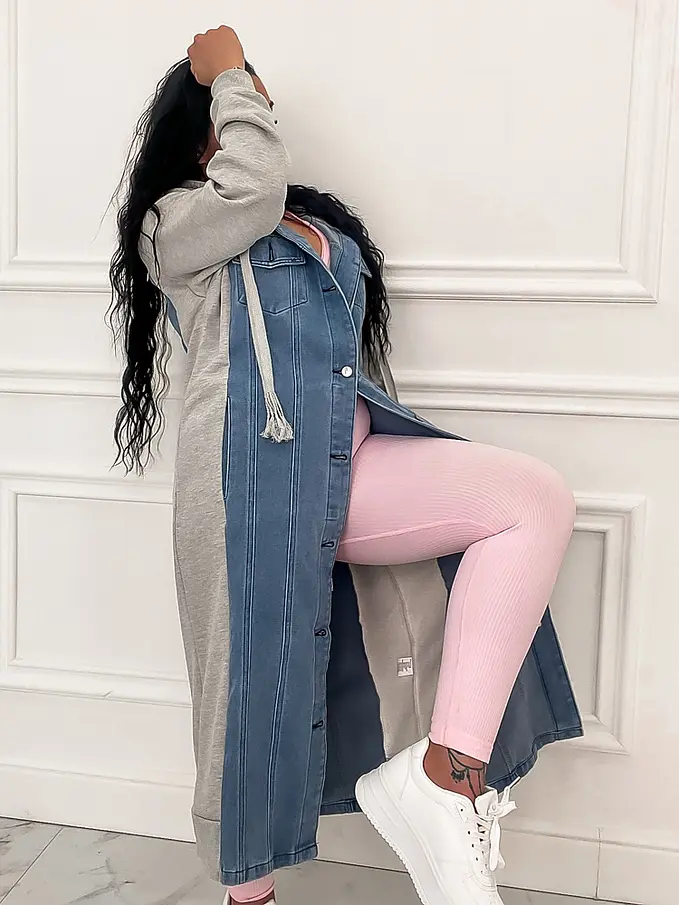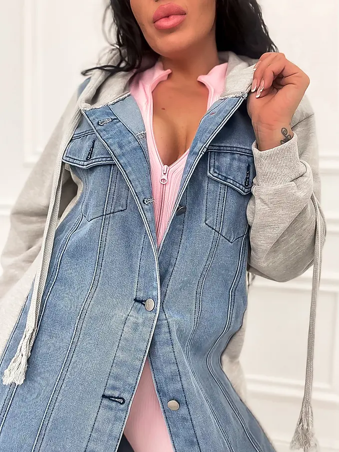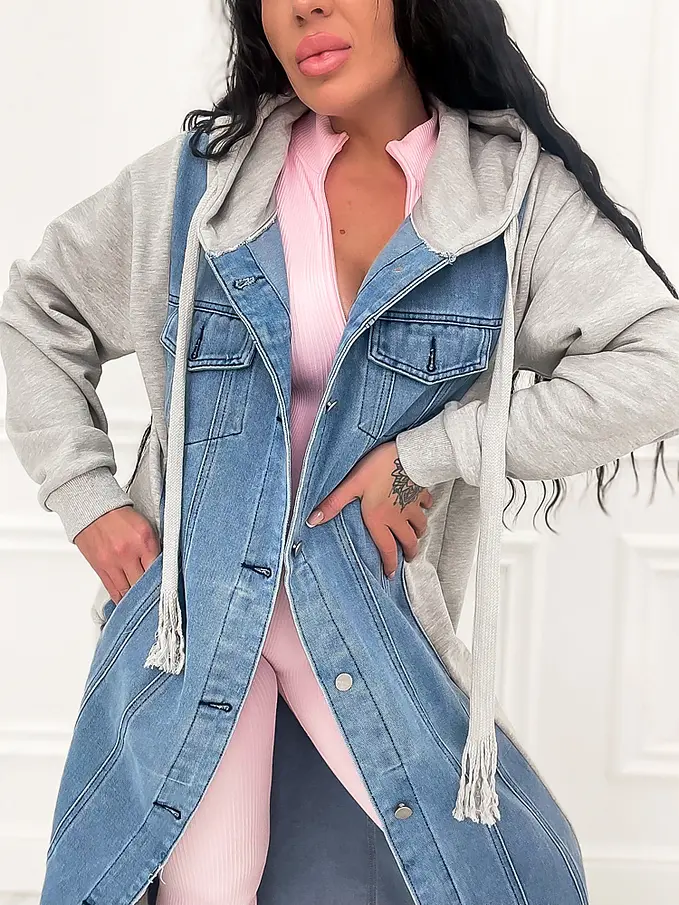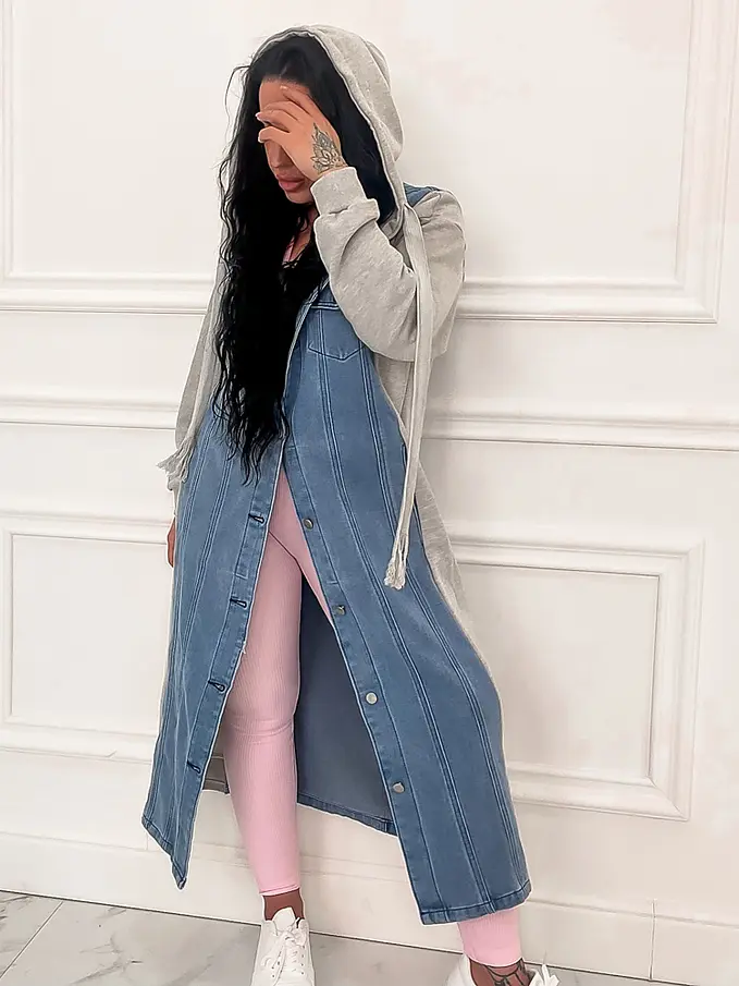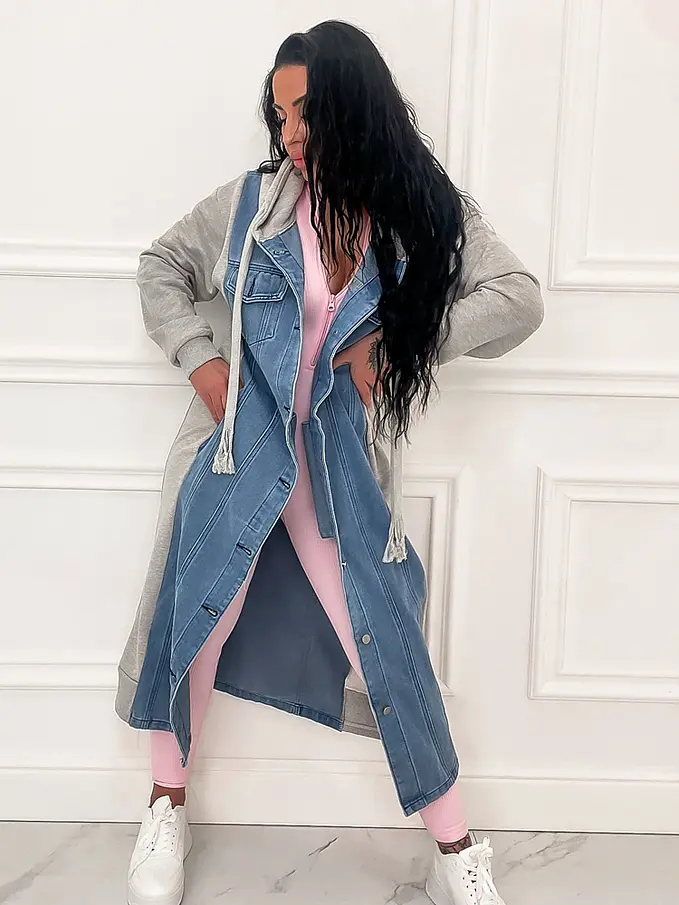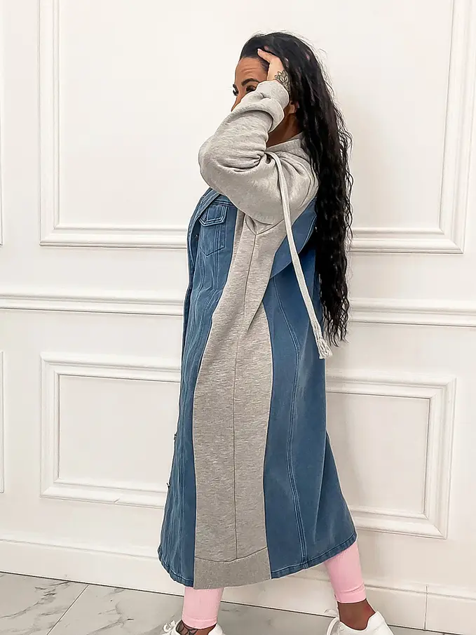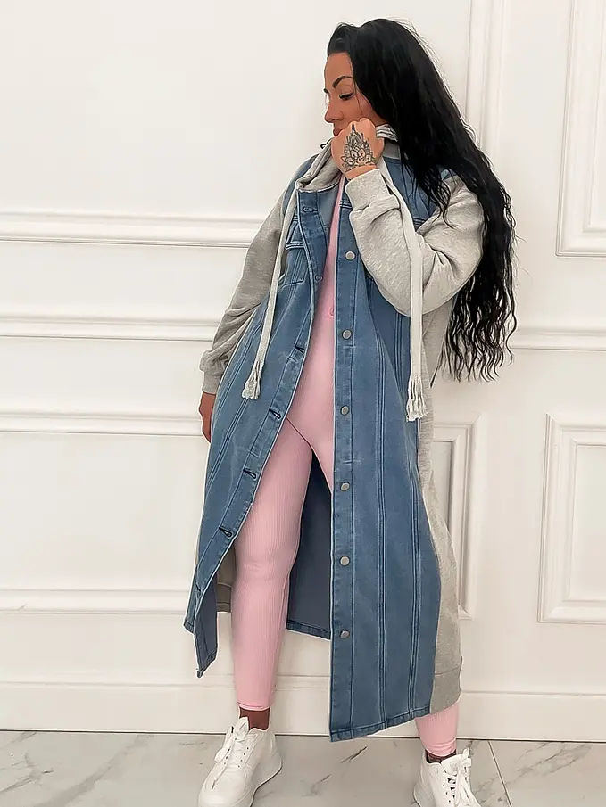 Hosszú kapucnis kombinált farmerkabát TIZIANA