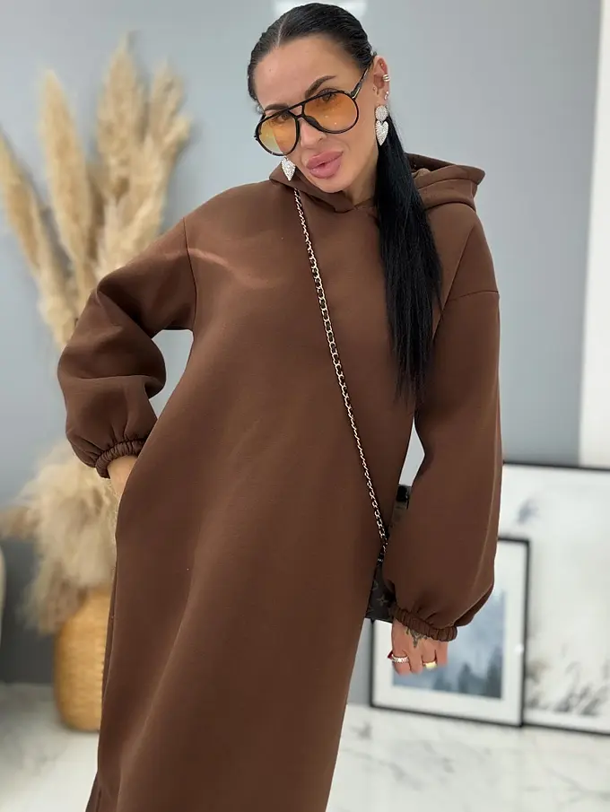 A ruha kellemes anyagból készült. Elasztikus. Anyaga meleg.