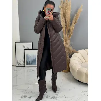 Hosszú műbőr kapucnis kabát övvel JAMEA