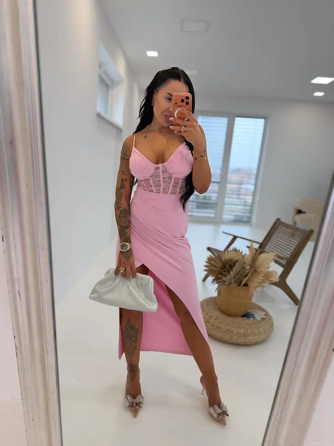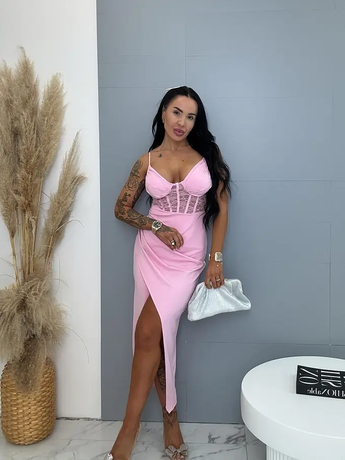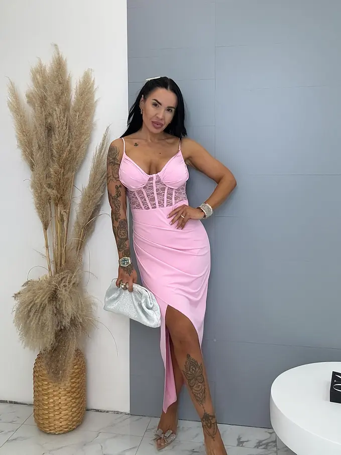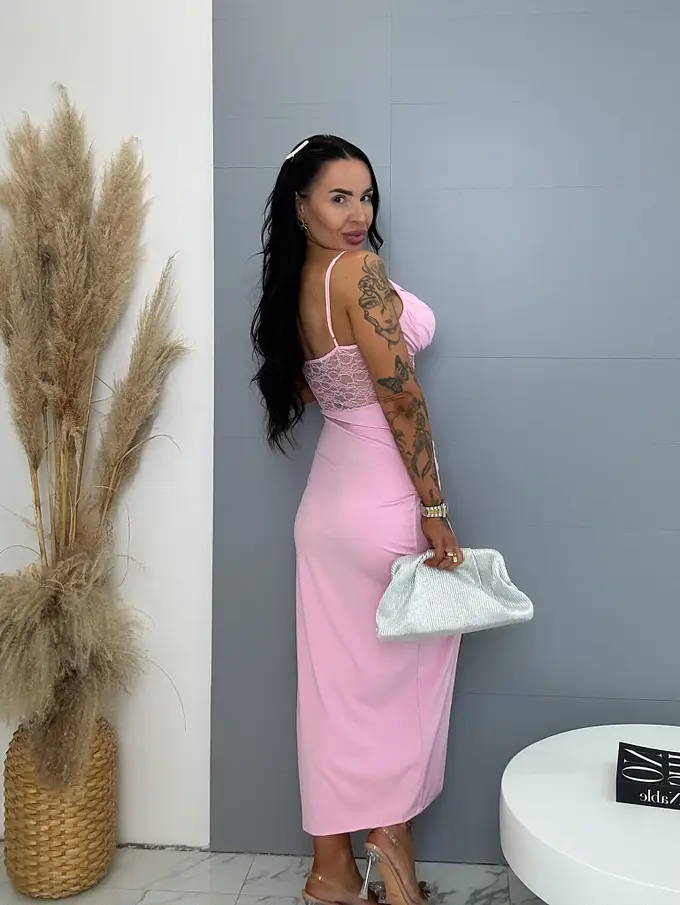 Hosszú ruha csipkedíszítéssel és melltöméssel ERINNE