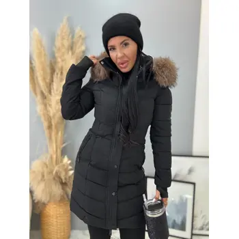 Hosszú steppelt kapucnis fekete kabát BABETTE
