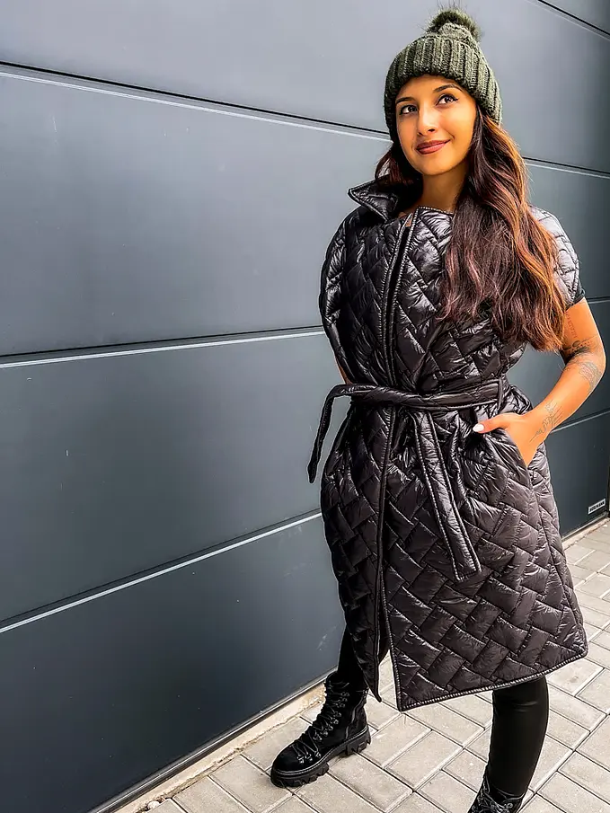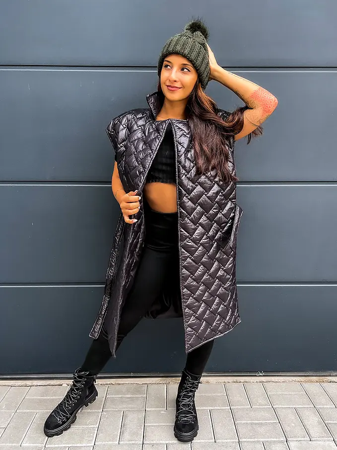 A modell 158 cm magas és 50 kg. S méretű ruhákat visel.