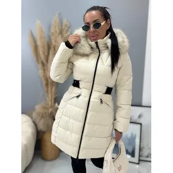 Kabát levehető szőrmés díszítéssel a galléron. Oldalsó zsebekkel. Fekete színű cipzárral és díszítéssel. Levehető kapucnival.