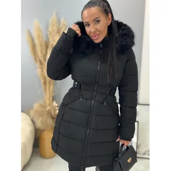 Kabát levehető szőrmés díszítéssel a galléron. Oldalsó zsebekkel. Fekete színű cipzárral és díszítéssel. Levehető kapucnival.