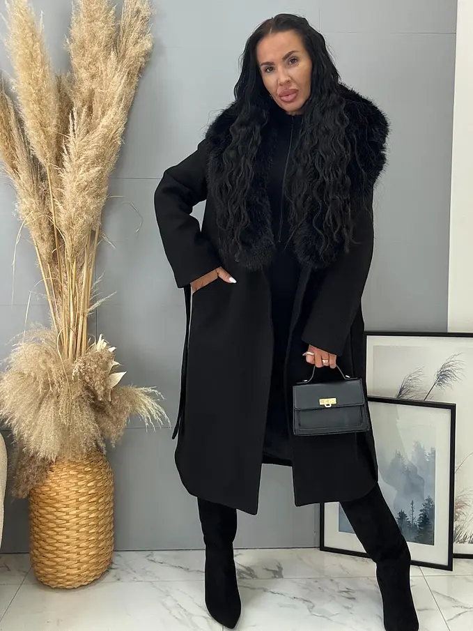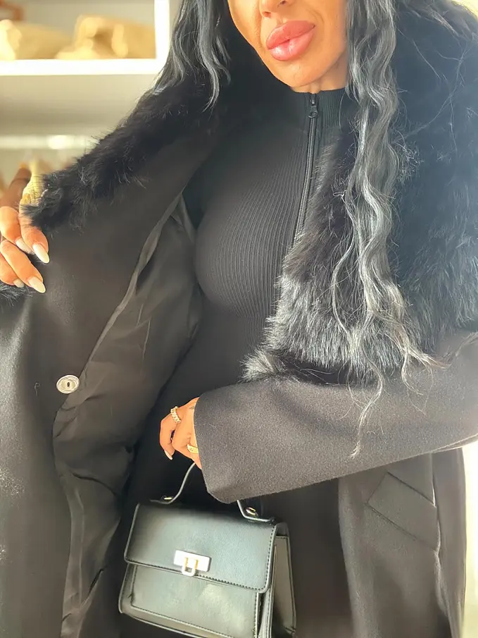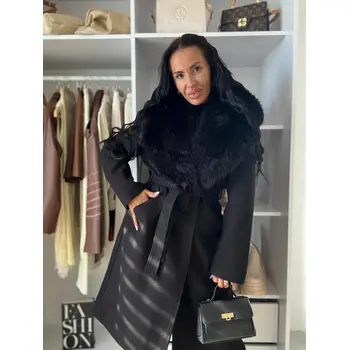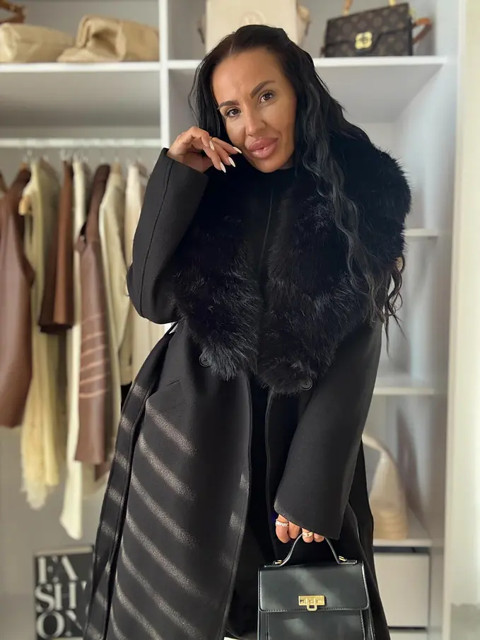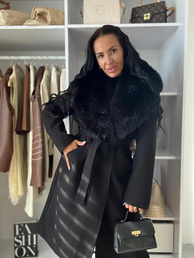 Hosszú szövetkabát szőrmével SILVORA