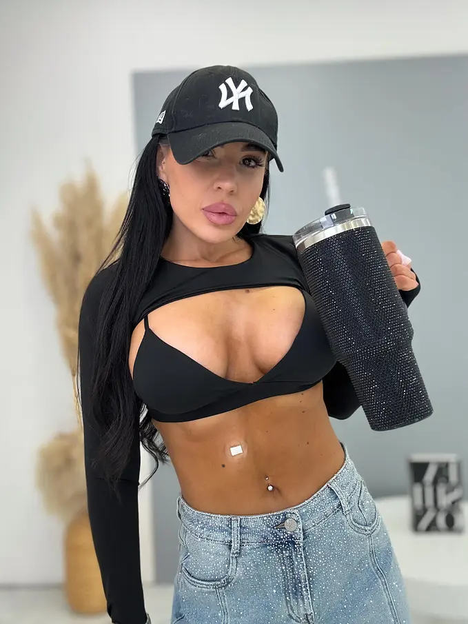 Trendi crop-top, kényelmes elasztikus anyagból, melltöméssel. Nincs összevarrva, és hüvelykujj-nyílással rendelkezik.