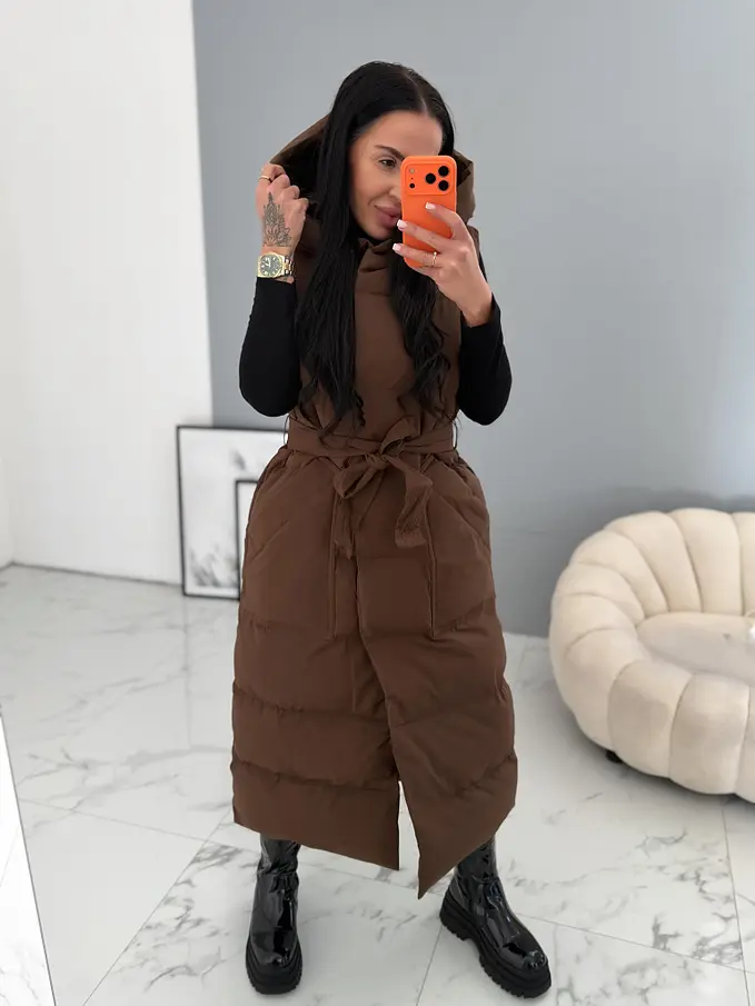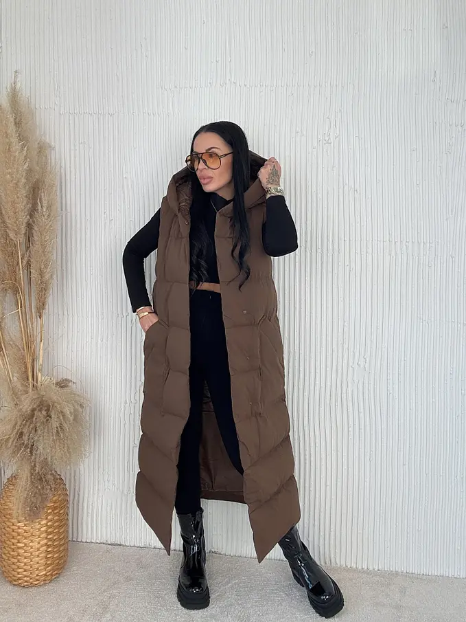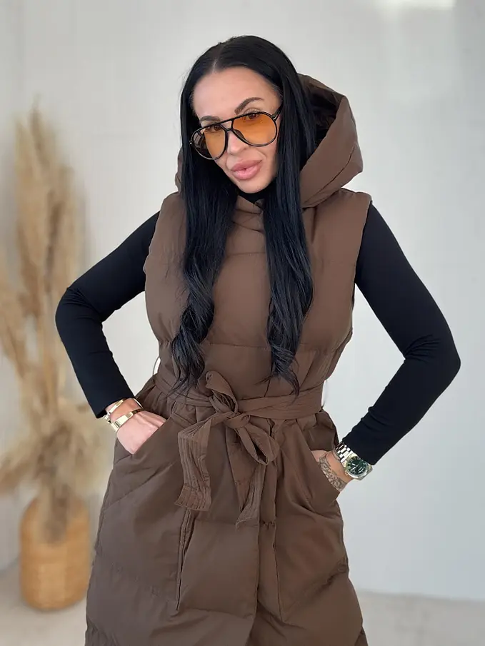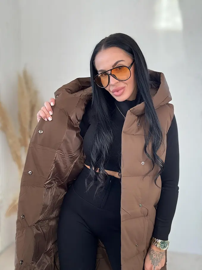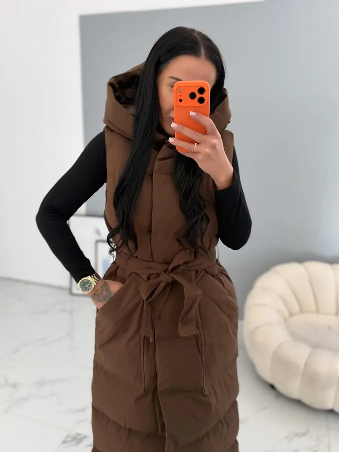 Prémium minőség. A mellény kellemes anyagból készült, kapucnis. A kapucni nem levehető. Kapcsokkal záródik.