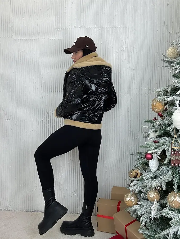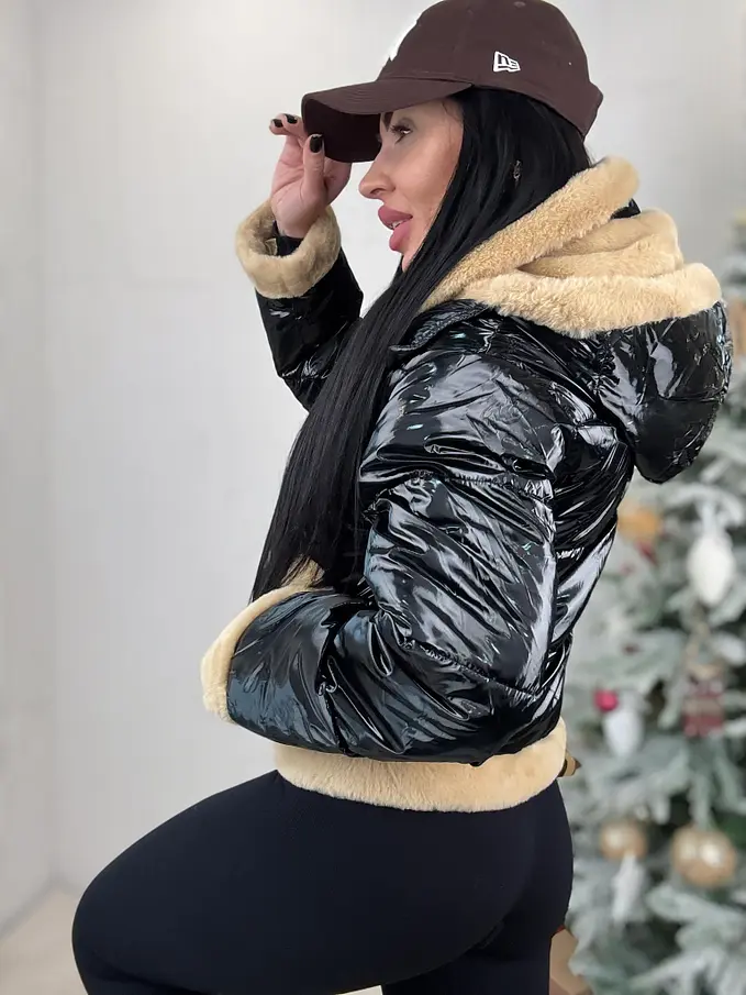 Kabát nem levehető szőrmés díszítéssel a galléron és az ujján. A részletek arany színűek. Oldalsó zsebekkel. A kapucni nem nem levehető.