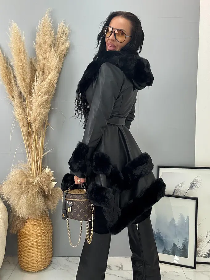 Kapucnis műbőr kabát szőrmével SOILA