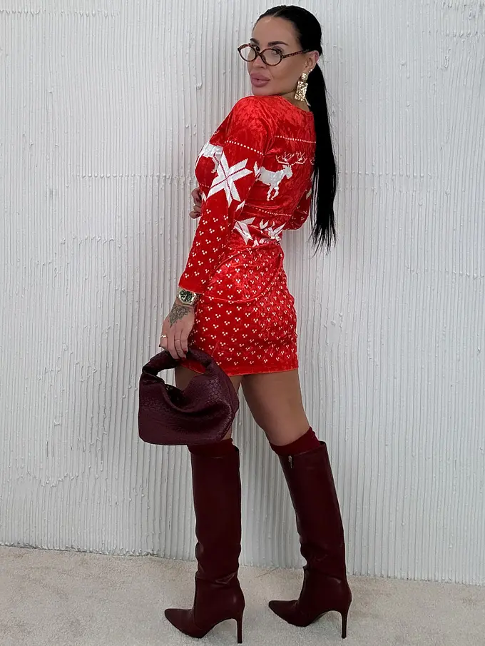 Bársony hatású karácsonyi ruha. Anyaga elasztikus.