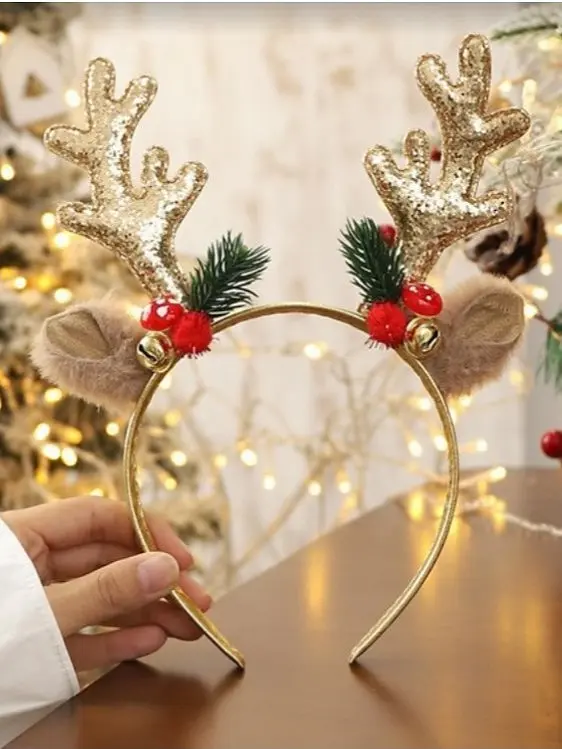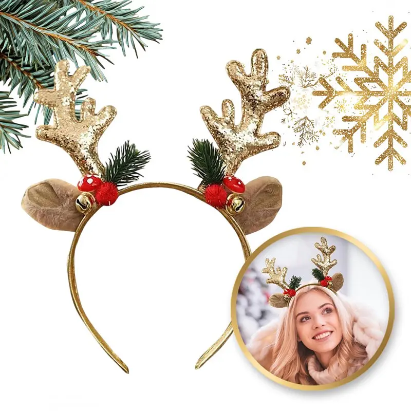 Karácsonyi fejpánt rénszarvas fülekkel és szarvakkal. Tökéletes kiegészítő egy különleges alkalomhoz.