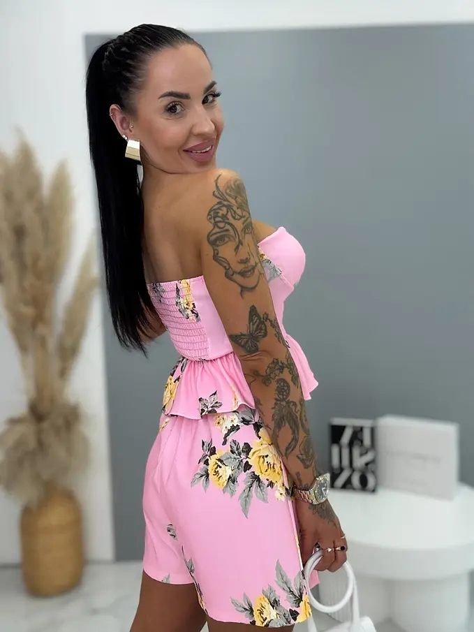 Prémium virágmintás top és szkort szett