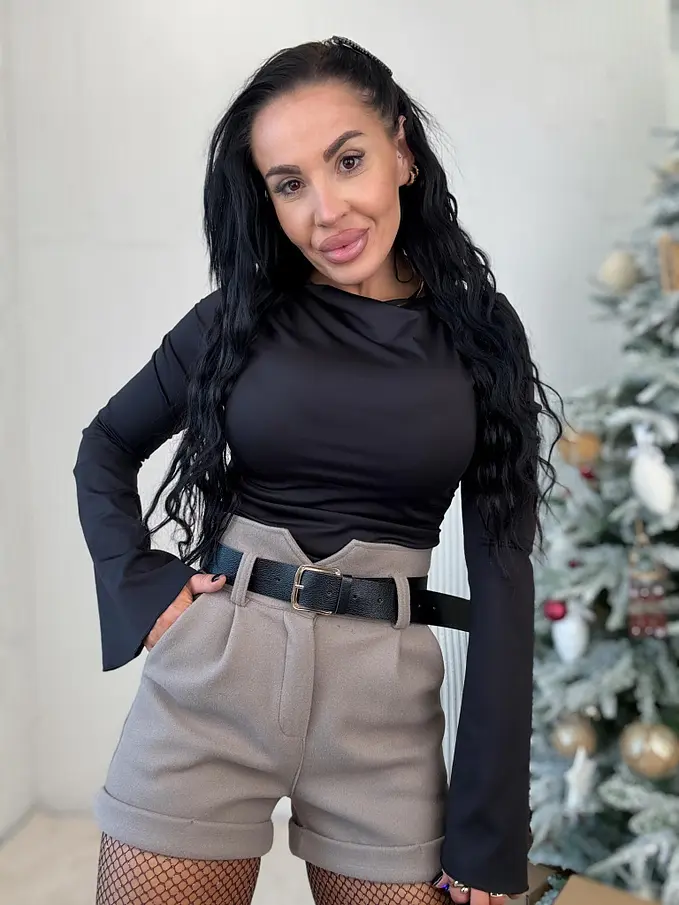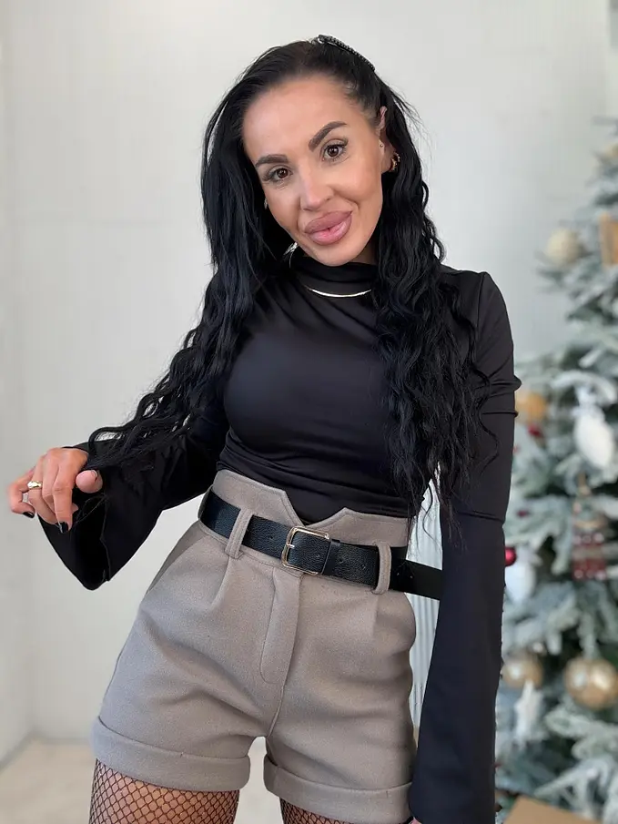 Alakot kiemelő fazonú sort, övvel. Enyhén elasztikus, kellemesen meleg anyagból készült.