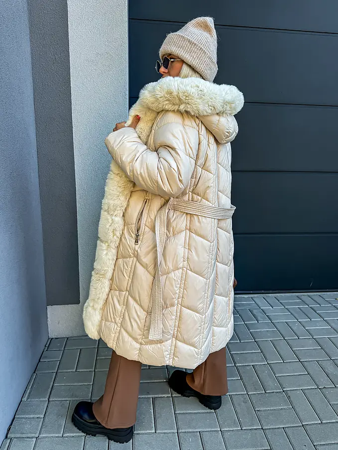 Stílusosan a hétköznapokon! Divatos kabát különlegességét a tökéletes illeszkedése nyújtja. Ideális a hidegebb napokon. A kapucni nem levehető, a szőrme azonban igen.