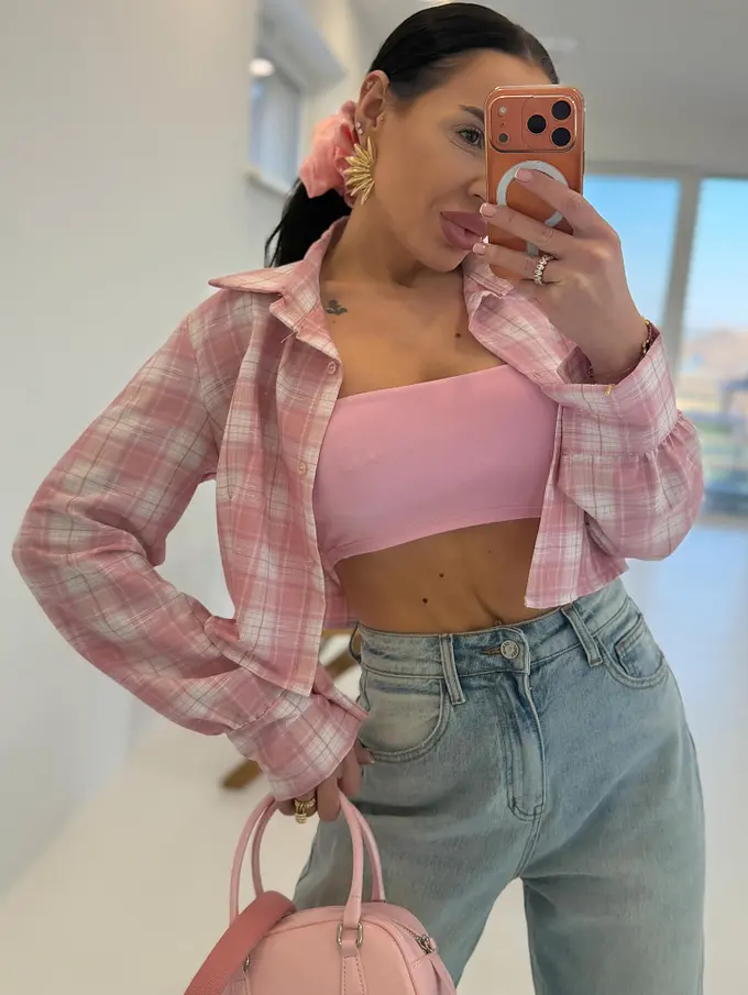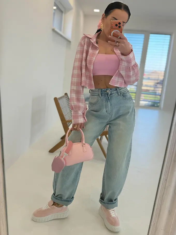 A modell 164 cm magas és 57 kg. A fotózáson S/M méretet visel.