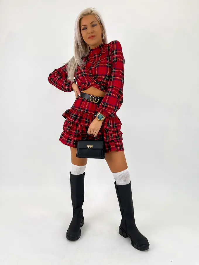 A modell 165 cm magas és 55 kg. S/M méretű ruhákat visel