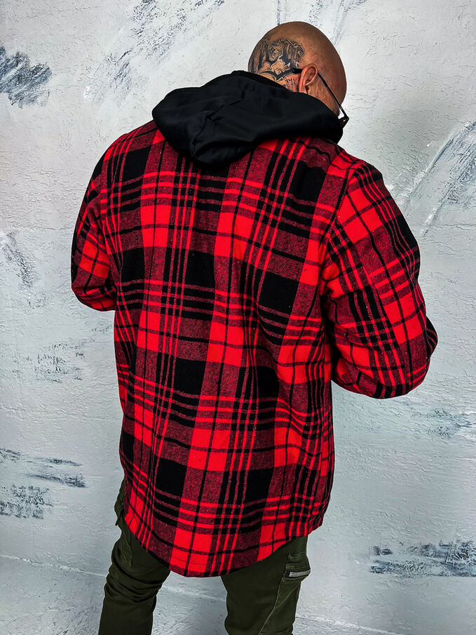 Bélelt kapucnis kockás ingkabát. A kapucni levehető.