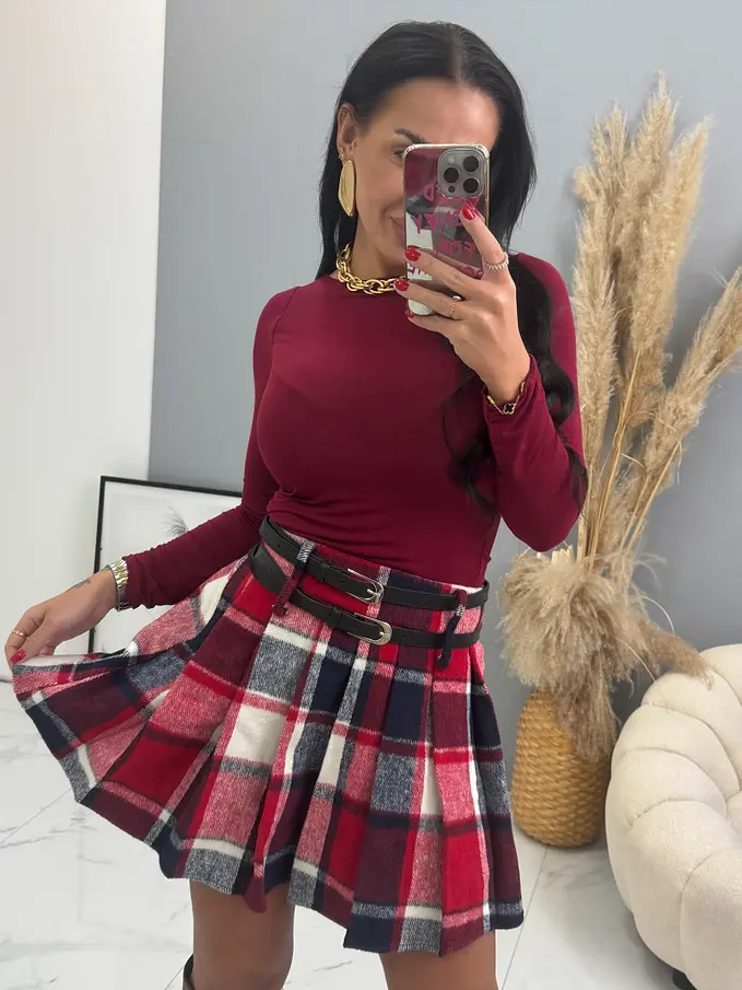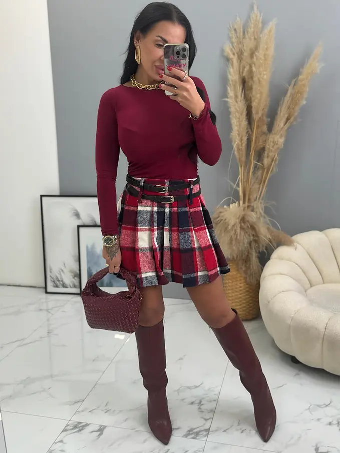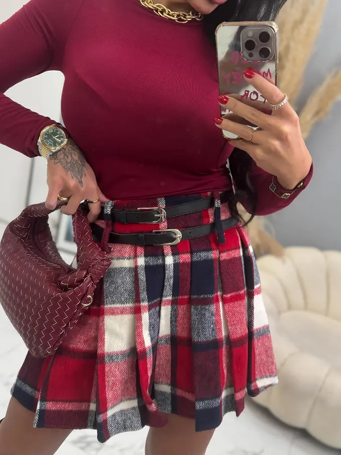 Kockás rakott szoknya övvel RONA