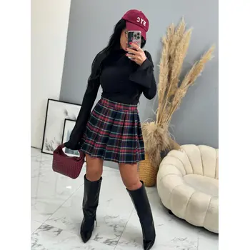 Nőies szoknya az alakot kiemelő fazonban, gumis derékkal.