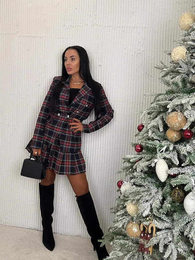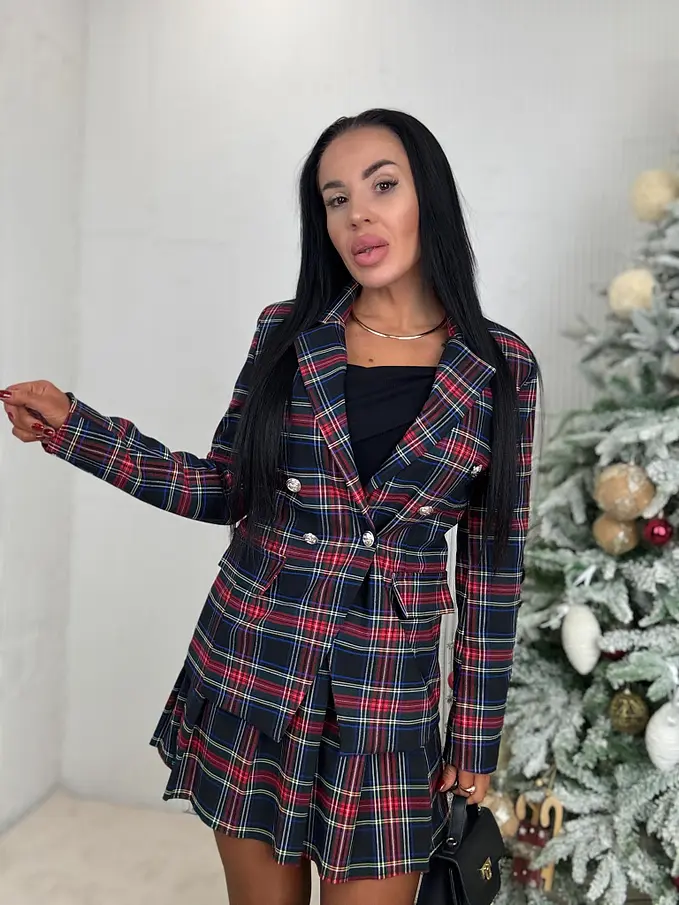 Kockás zakó kellemes, nem elasztikus anyagból. Válltöméssel rendelkezik.
