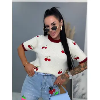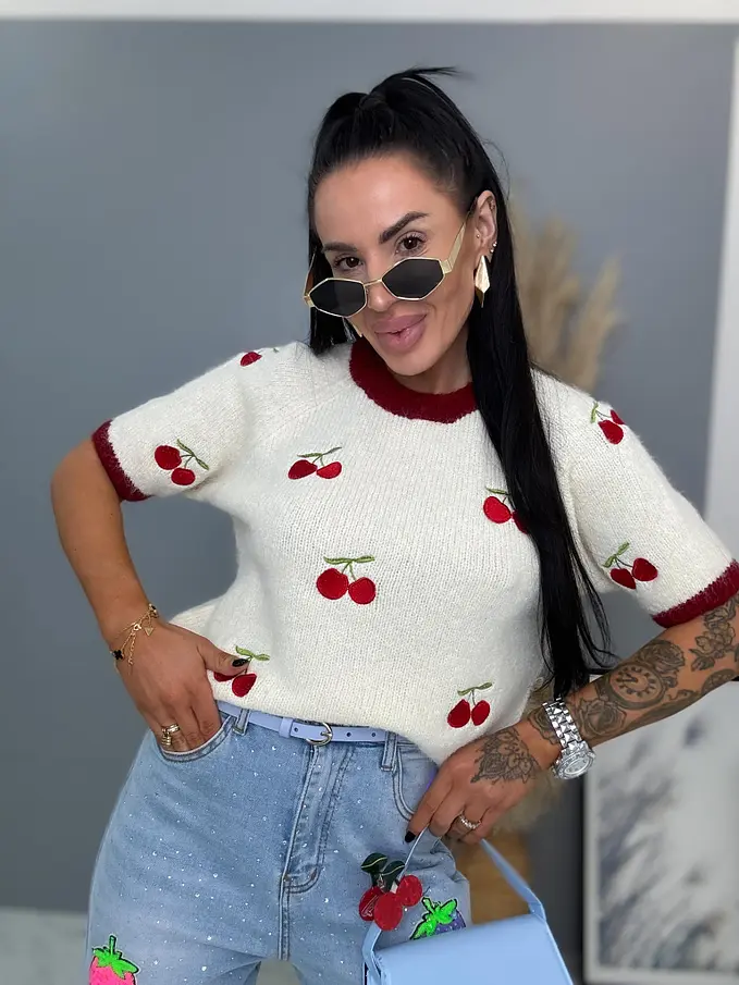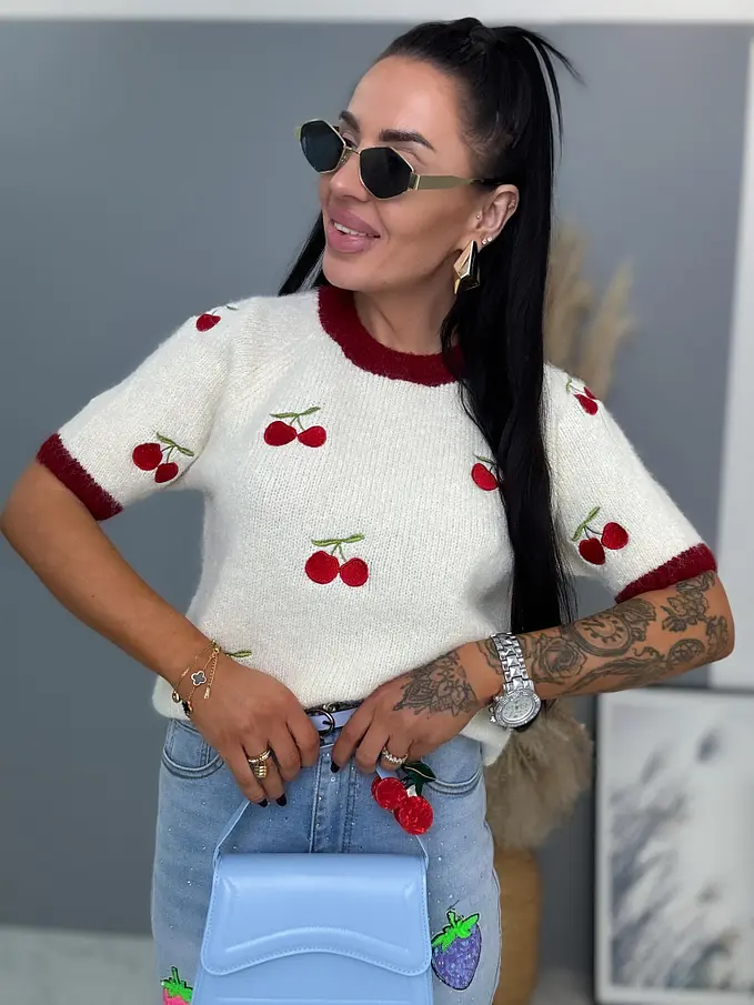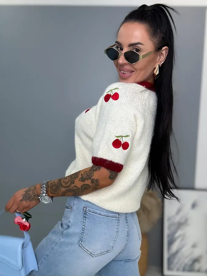 Kötött pulóver hímzett cseresznyékkel CHERRY