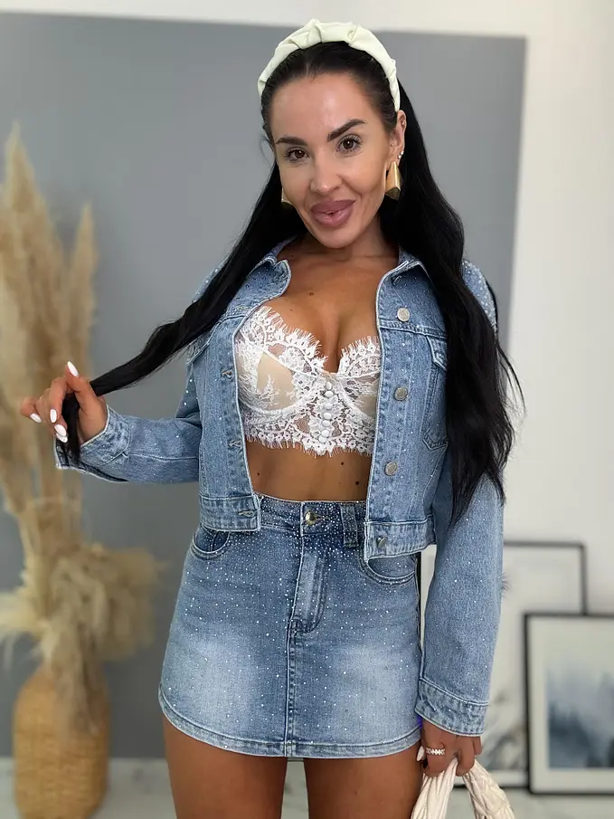 Kövecskékkel díszített farmer skort MAXINE