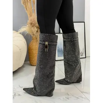 Kövecskékkel díszített magasszárú csizma ZOFIA