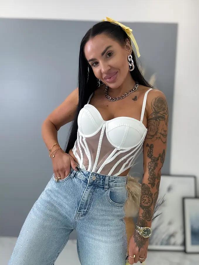 A modell 164 cm magas és 57 kg. A fotózáson S méretet viselt.