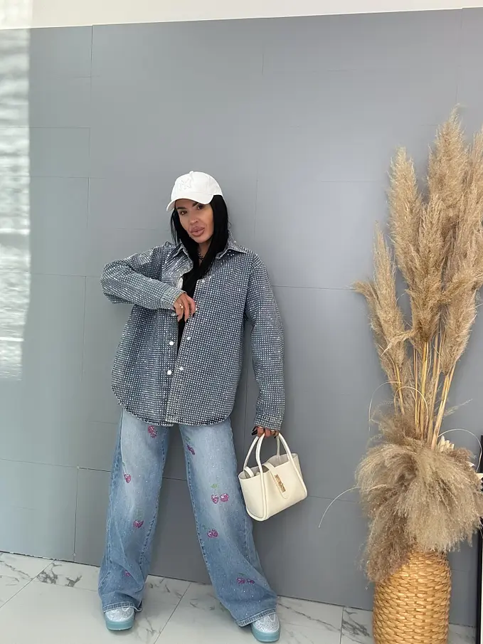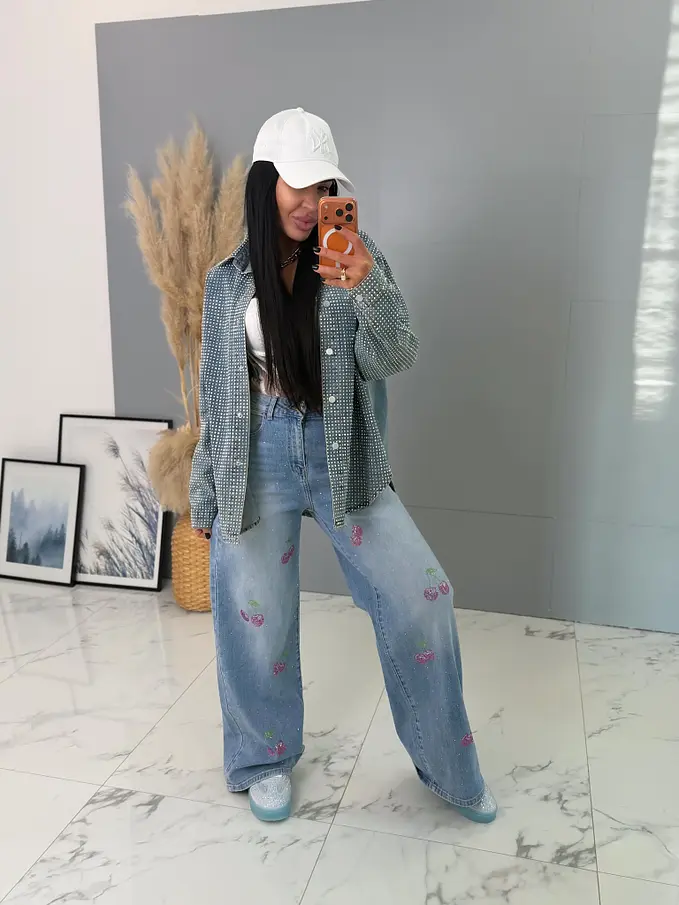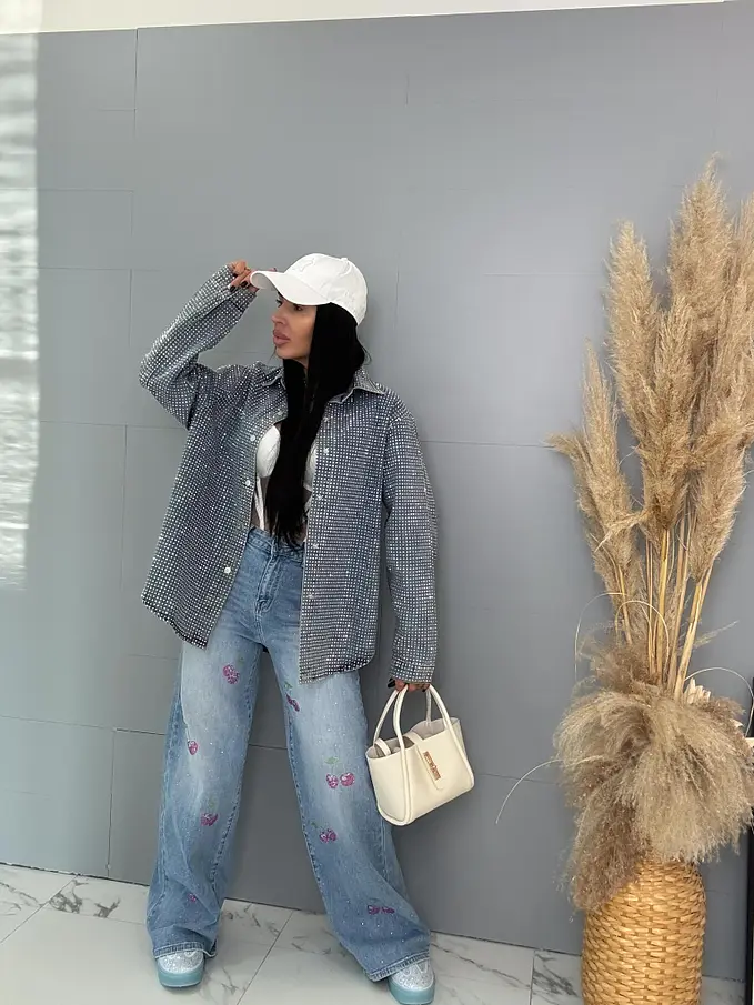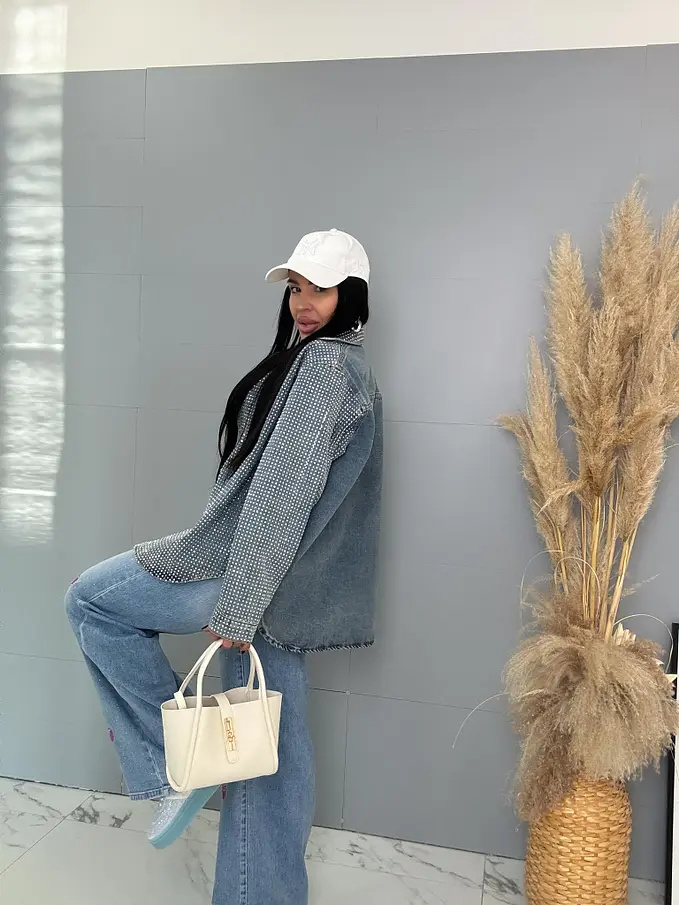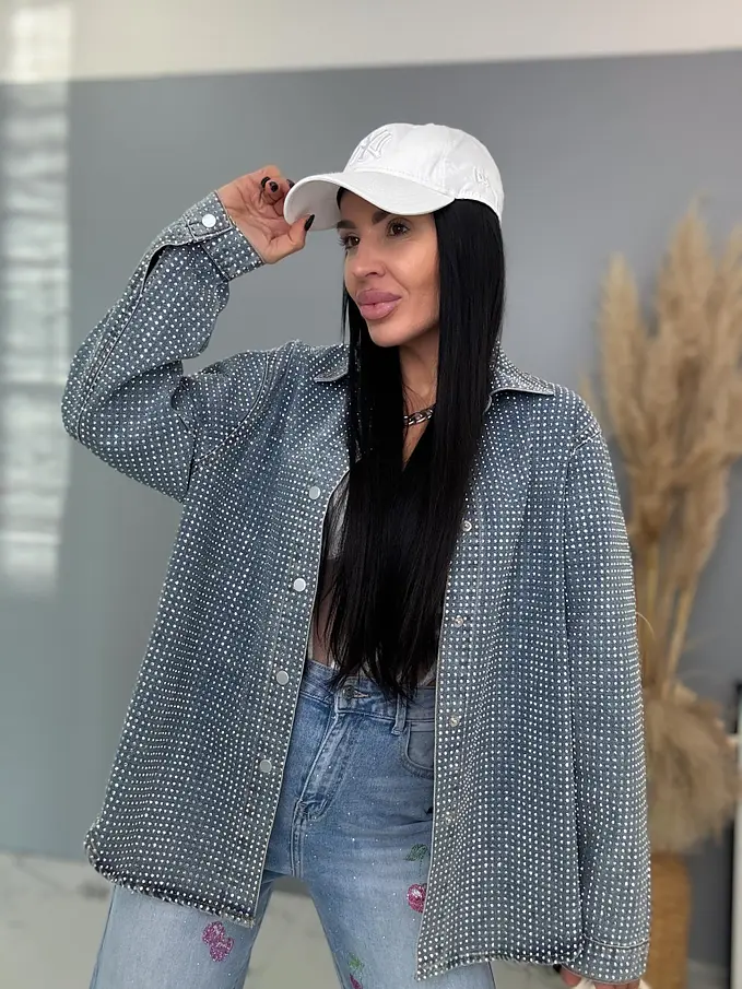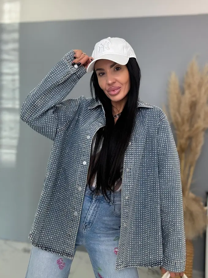 Kövekkel díszített farmer ingkabát ANZIA