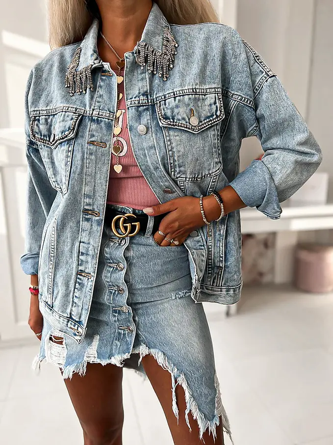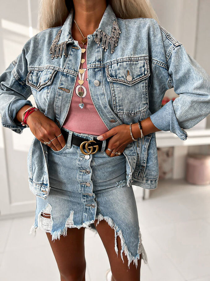Kövekkel díszített farmerkabát JULIA