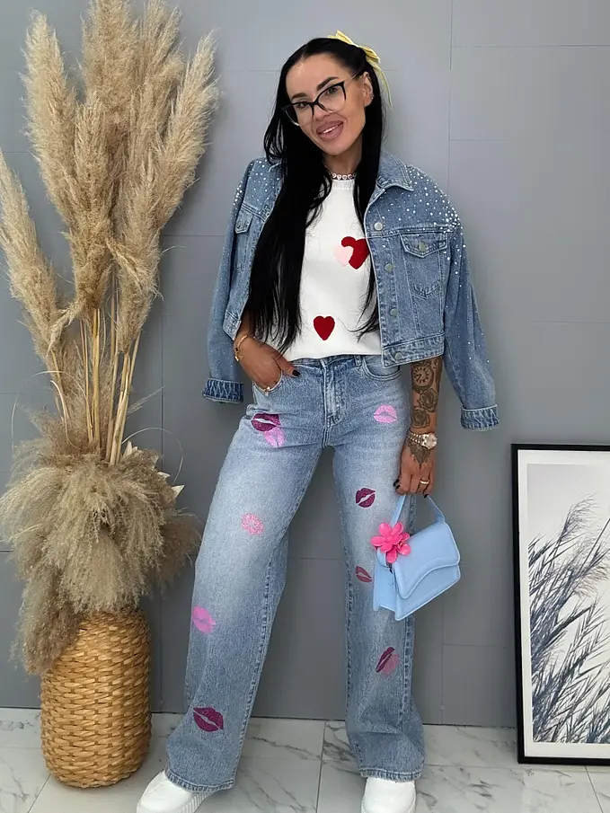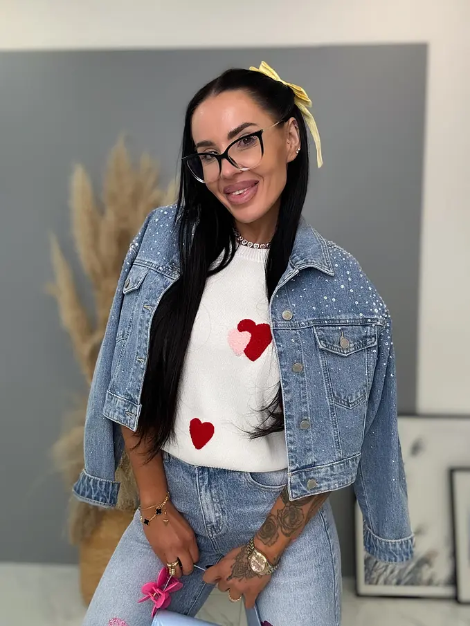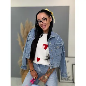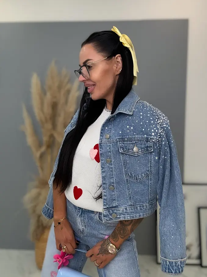 Kövekkel díszített rövid farmerdzseki EVELIN