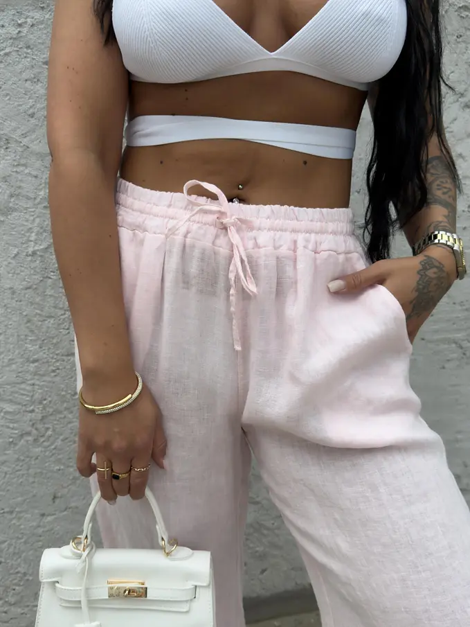 Len anyagú gumis derekú palazzo nadrág KEREN