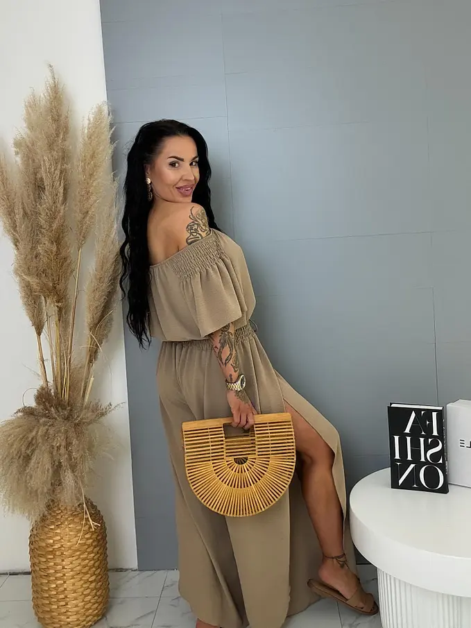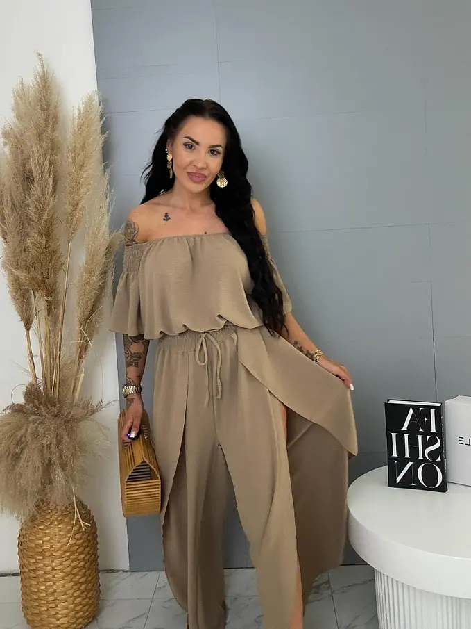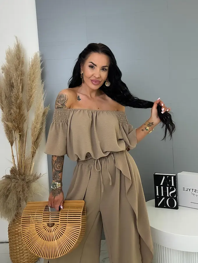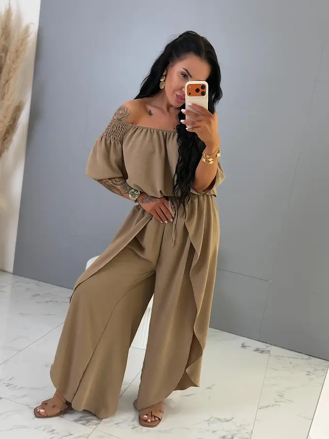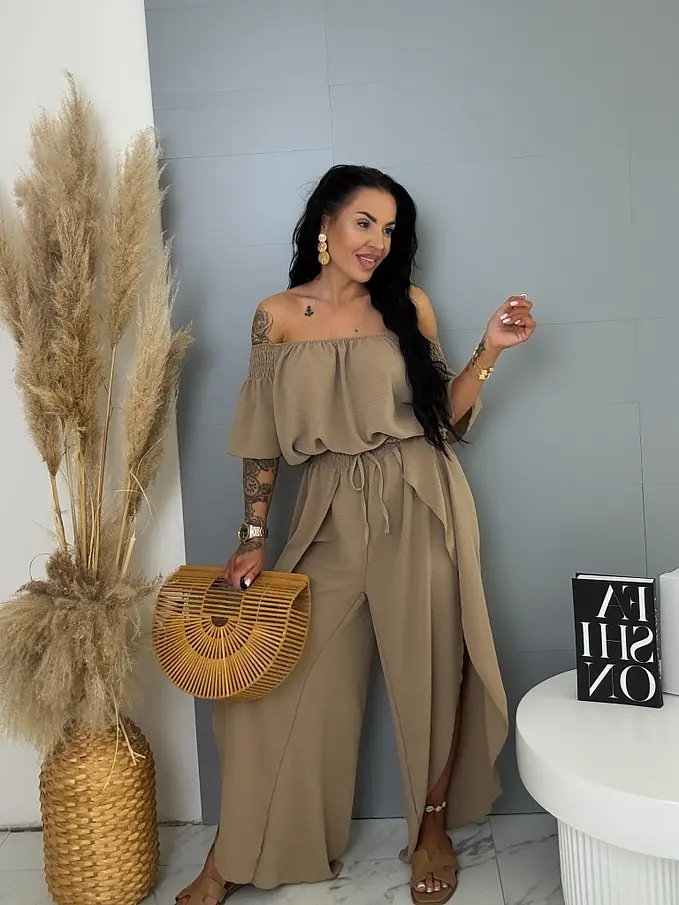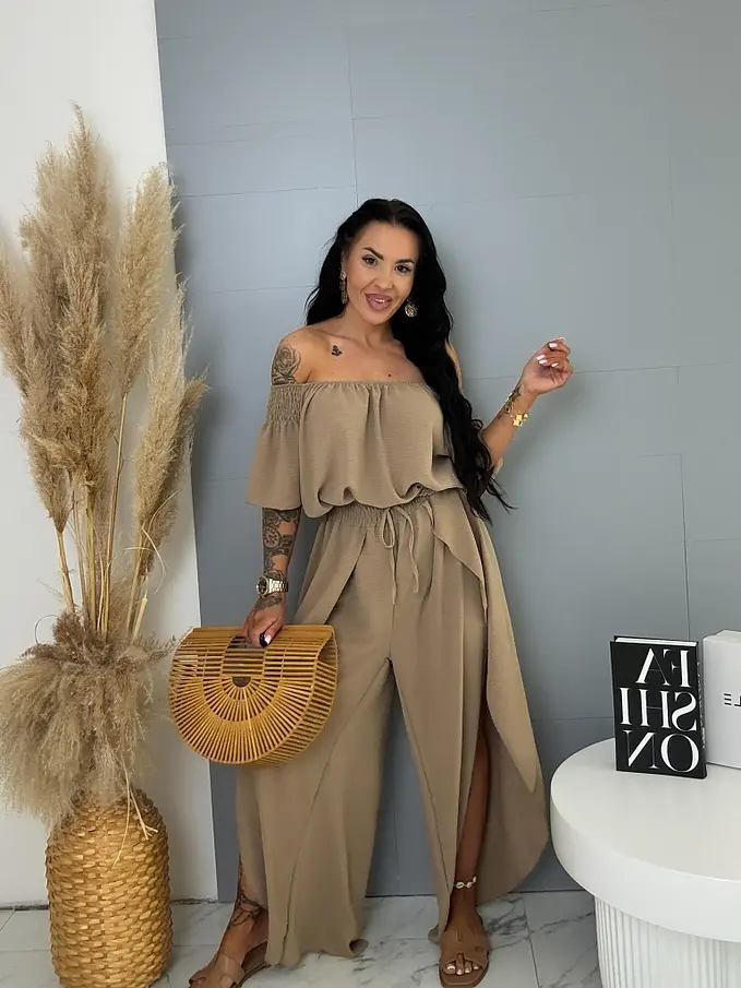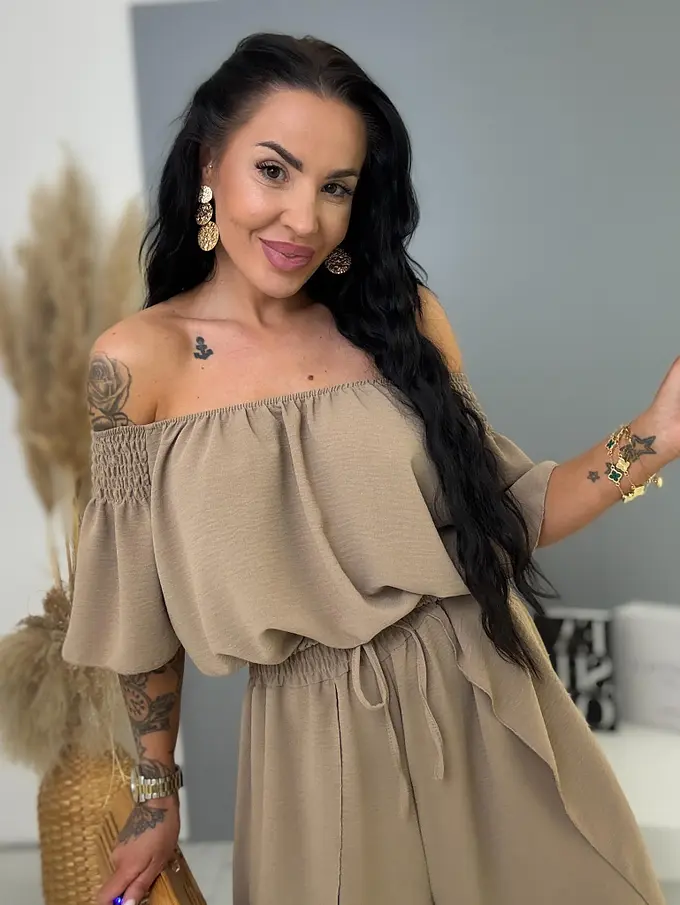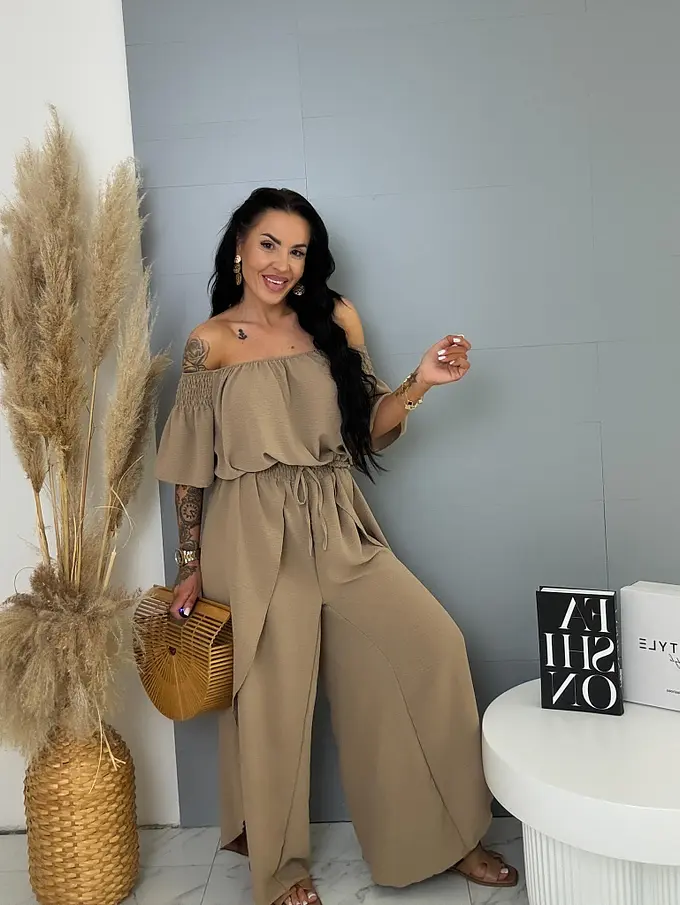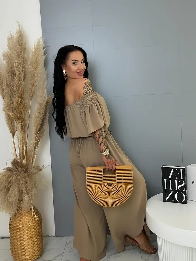Rövid ujjú overál, gumis derékkal, könnyed, nyári viselet minden napra.
